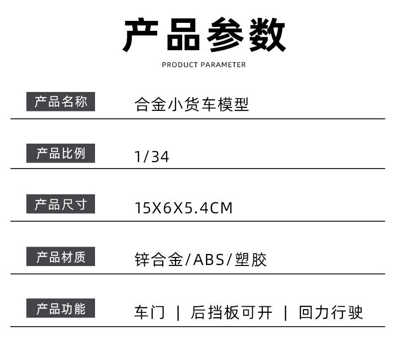 가방 1/34 합금 모델 소형 트럭 시뮬레이션 금속 어린이 장난감 자동차 운송 트럭 배달 트럭 소년 클래식