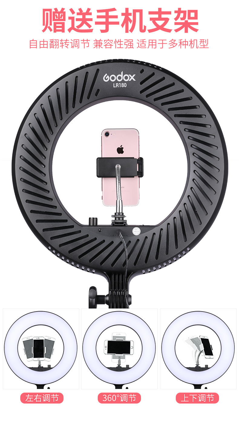 Godox LED 링 라이트 LR180 Douyin Kuaishou 인터넷 연예인 앵커 라이브 방송실 보조 조명 소프트 라이트 사진 조명