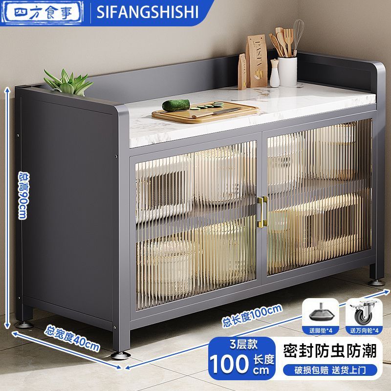 주방 수납 선반, 슬레이트 양문형 캐비닛 도어, 바닥에서 천장까지 이어지는 다층 전자레인지 수납, 다기능 야채 컷팅 찬장스토어 가기