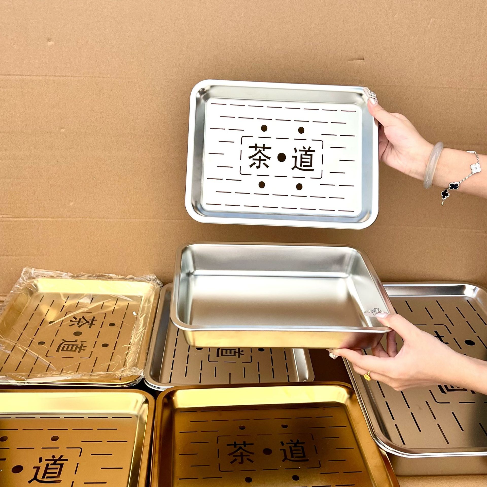 304 스테인레스 스틸 중국 차 트레이 가정용 물 컵 트레이 차 트레이 휴대용 이중층 물 저장 필터 물 트레이