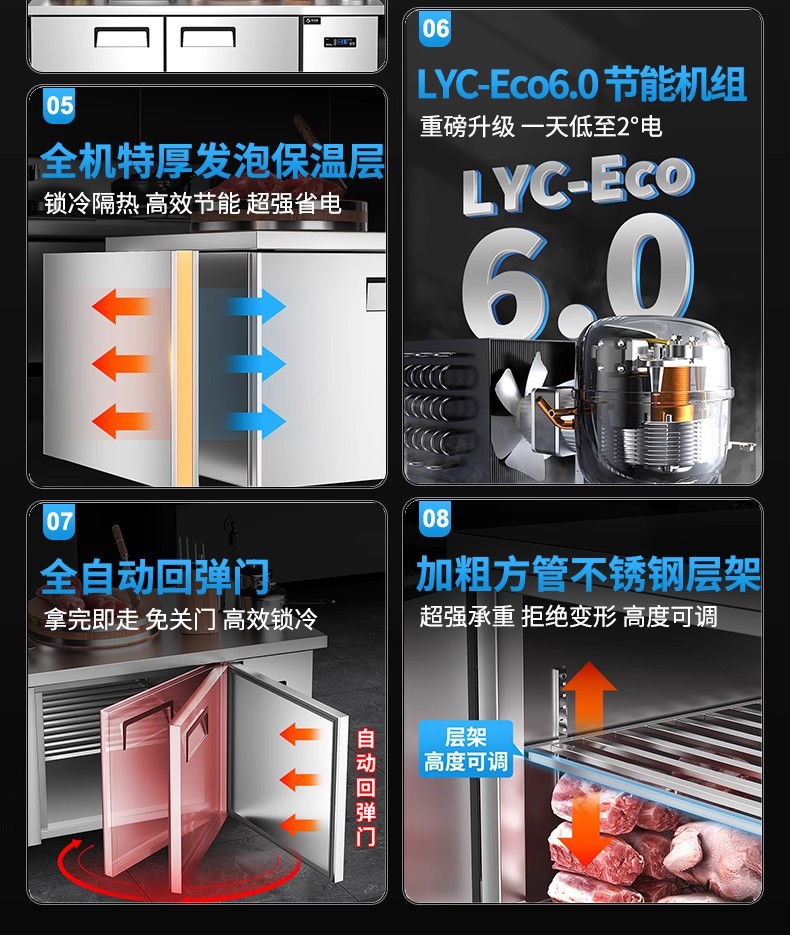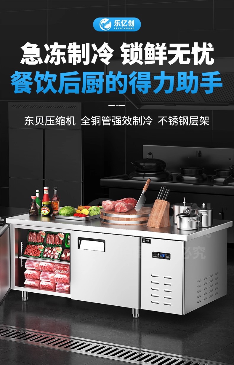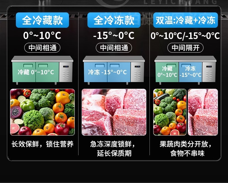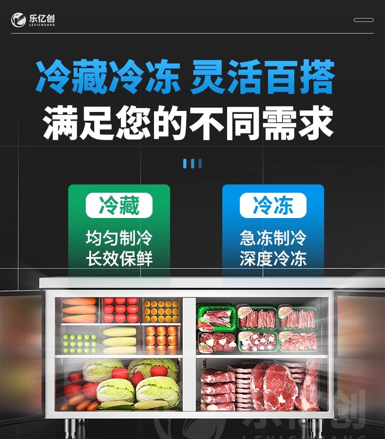 Leyi Chuangping 냉동고 냉장 작업대 냉동고 상업용 냉동고 스테인레스 스틸 작업대 냉장고 신선 유지 주방스토어 가기