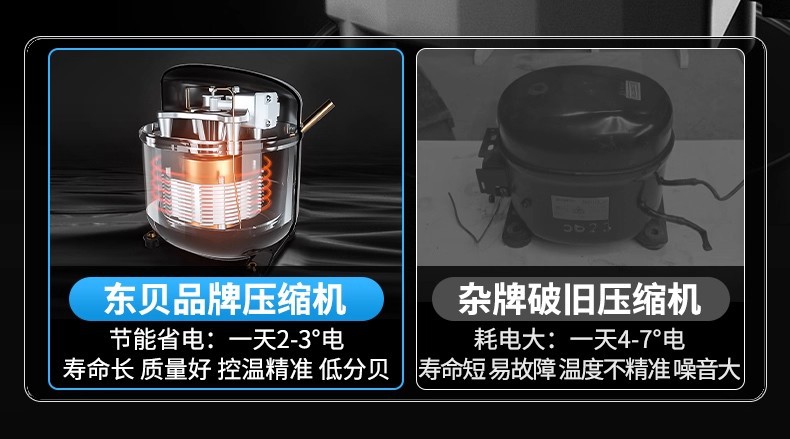 • 이중 온도 [익스트림 모델] 주파수 변환 에너지 절약 60% + 마이크로컴퓨터 온도 조절 + 스테인레스 스틸 본체 + 스테인레스 스틸 선반 + 자동 리바운드 도어·