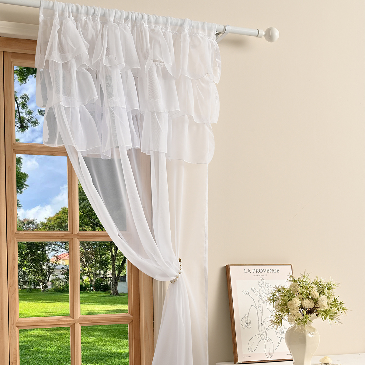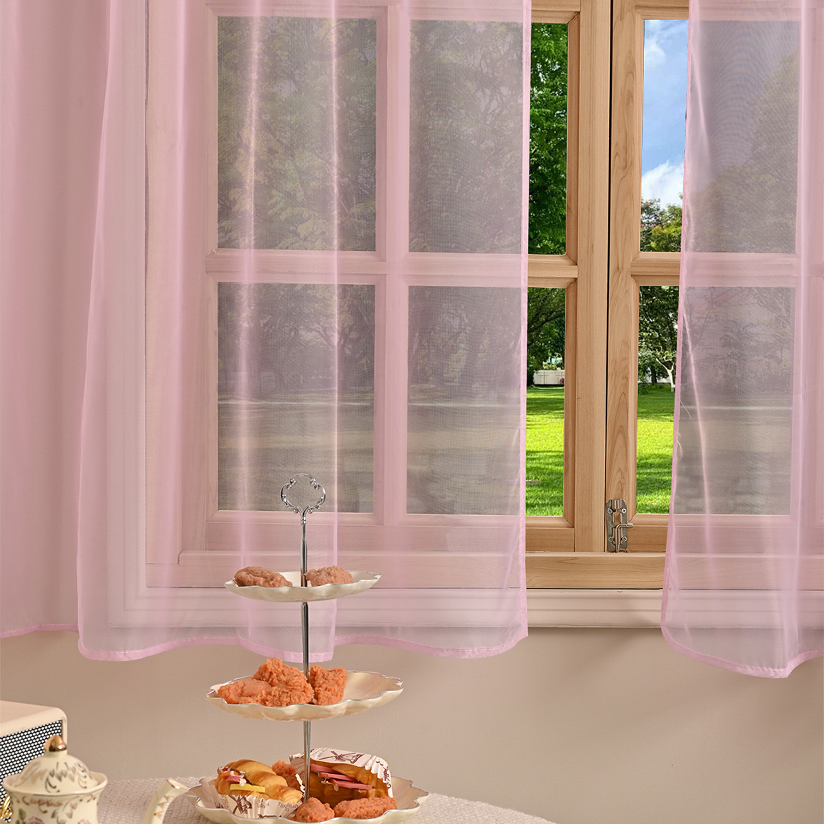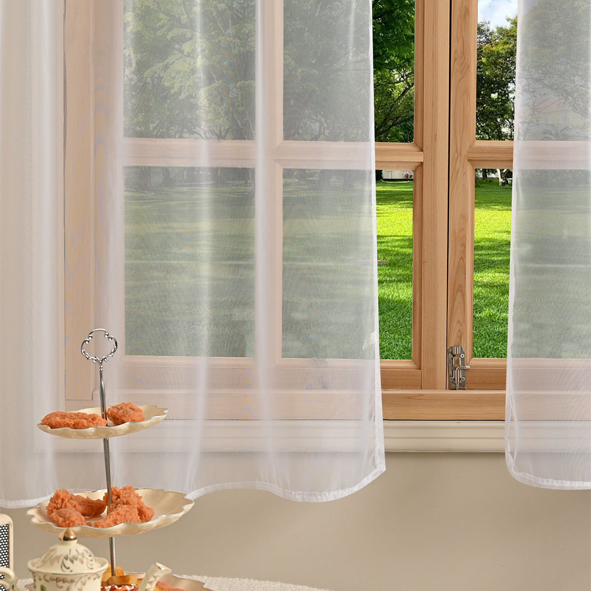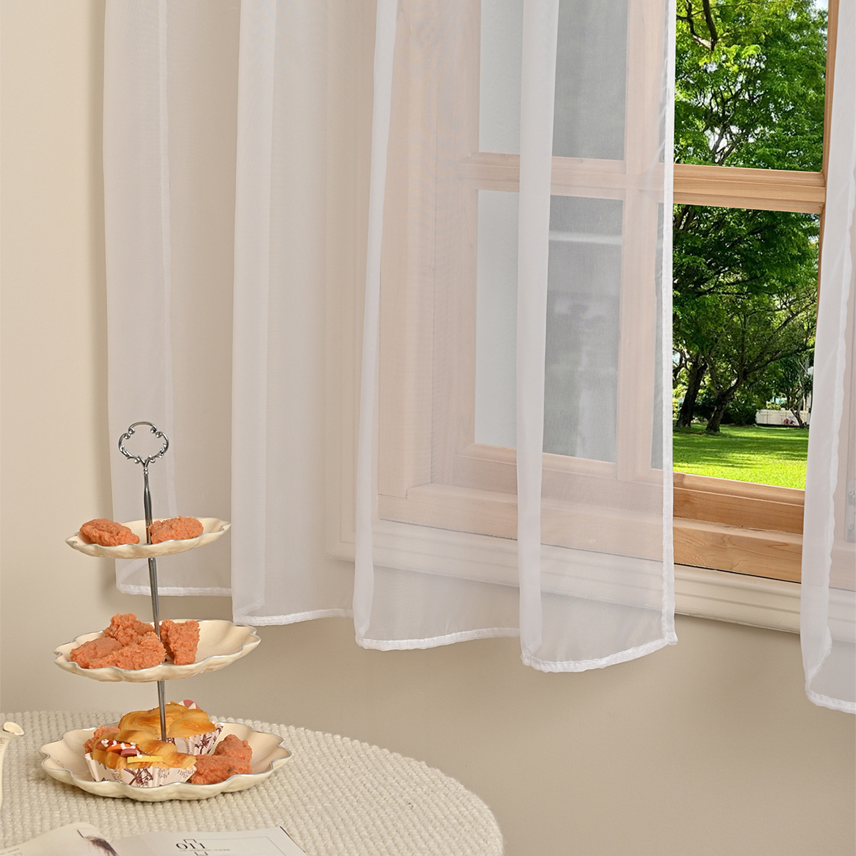 국경을 넘는 새로운 단색 트릴렌 3 레이스 창 스크린 거실 반 차광 커튼 거즈 TEMU Dropshipping스토어 가기