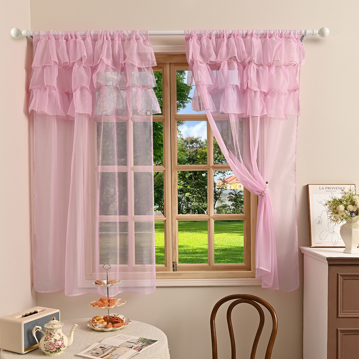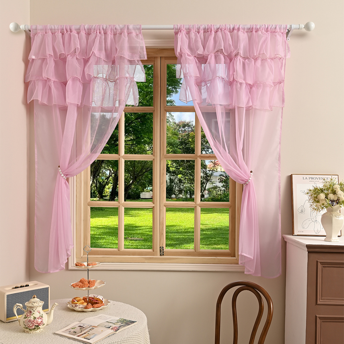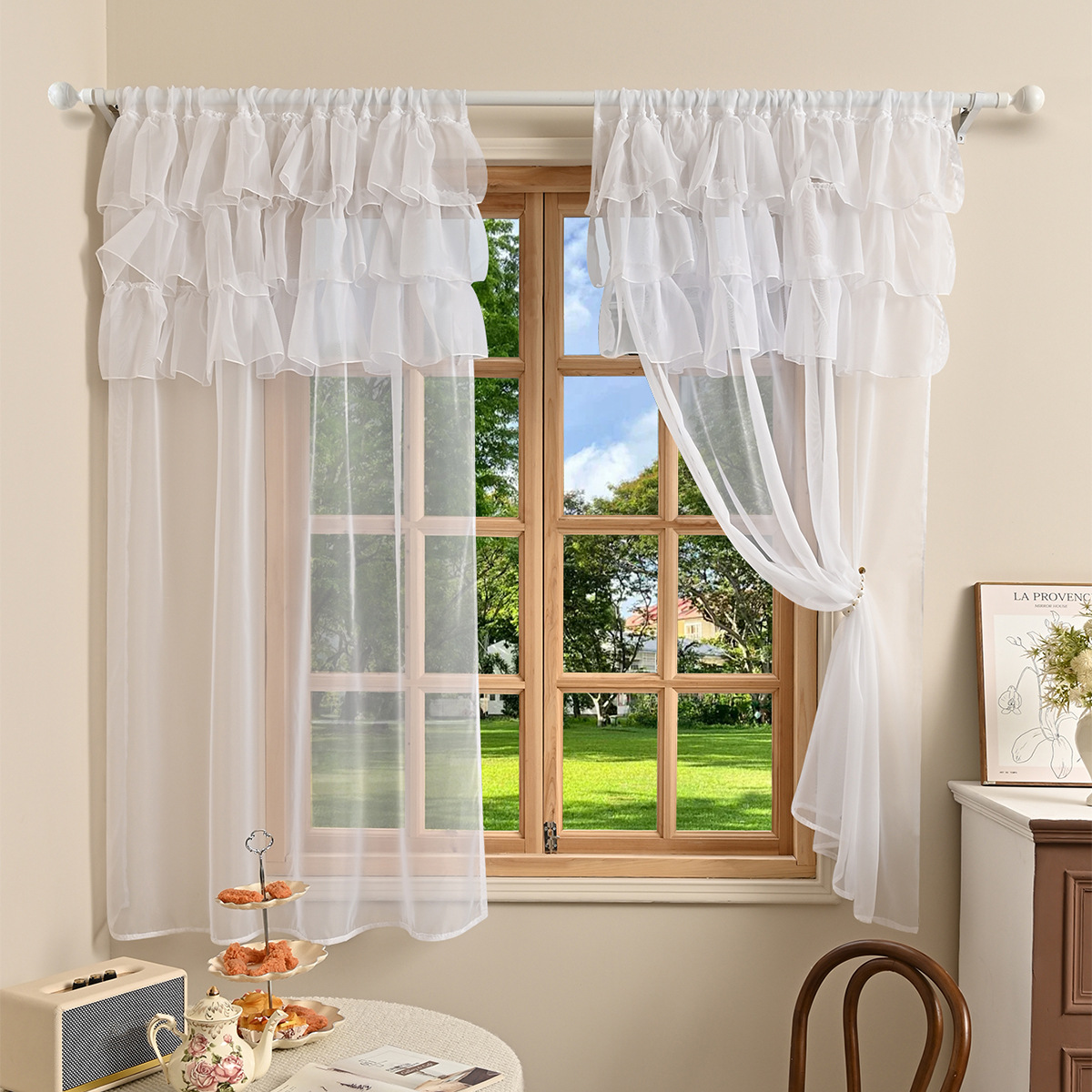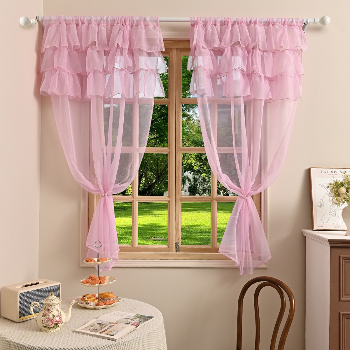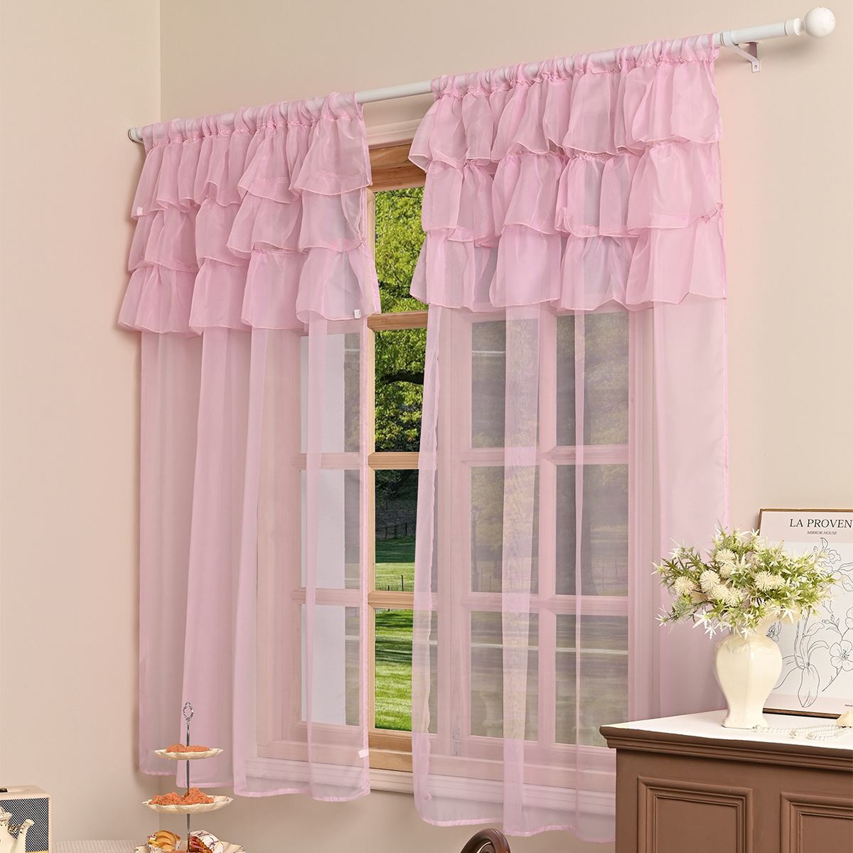 국경을 넘는 새로운 단색 트릴렌 3 레이스 창 스크린 거실 반 차광 커튼 거즈 TEMU Dropshipping스토어 가기