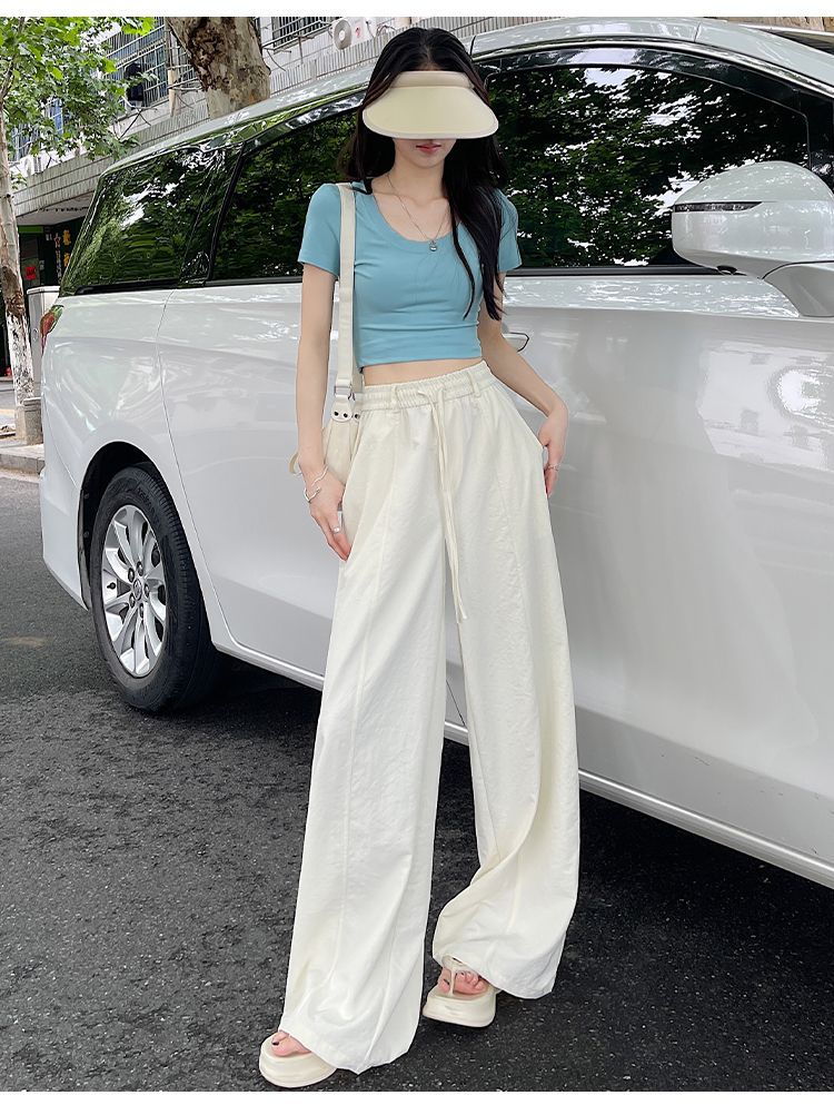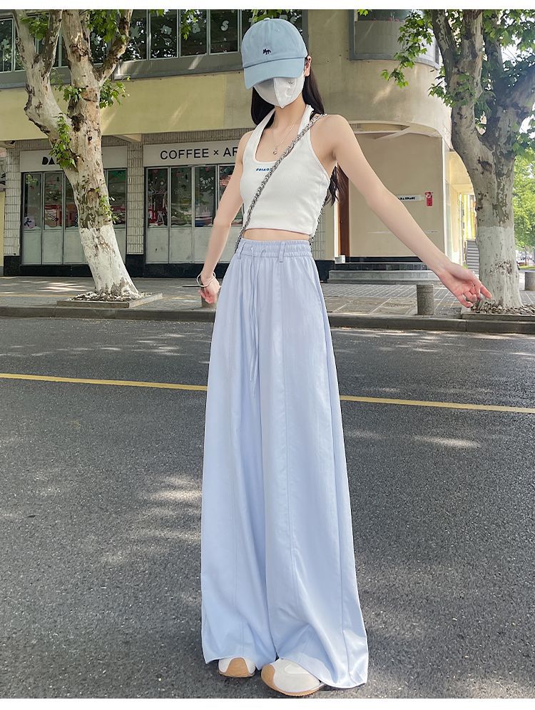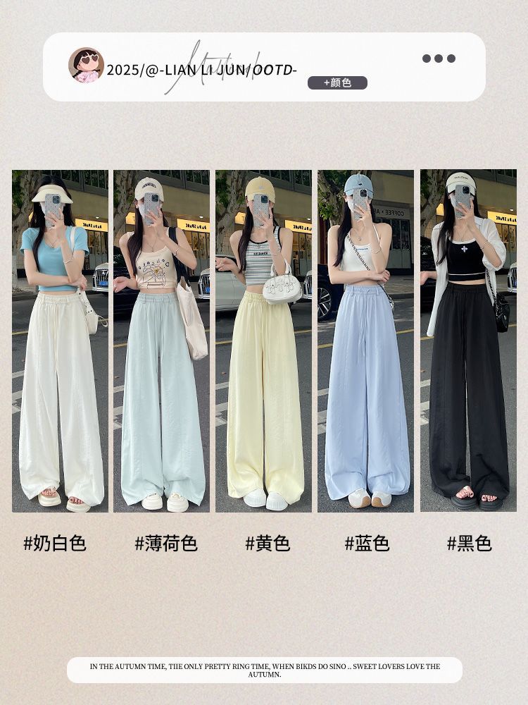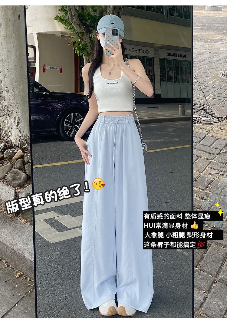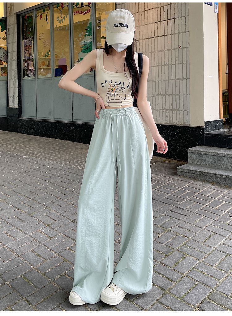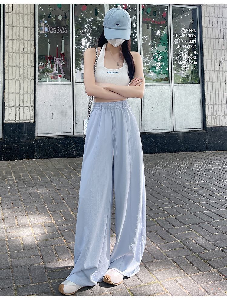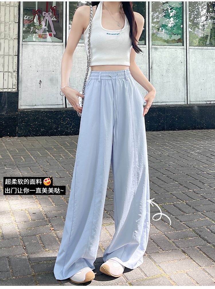 여성용 속건성 와이드 팬츠 여름 얇은 2025 새로운 하이 웨이스트 캐주얼 슬림 스포츠 하이킹 바지 미드 라인 오버올스토어 가기