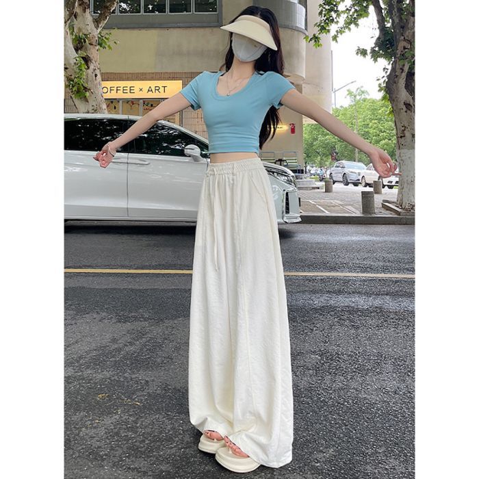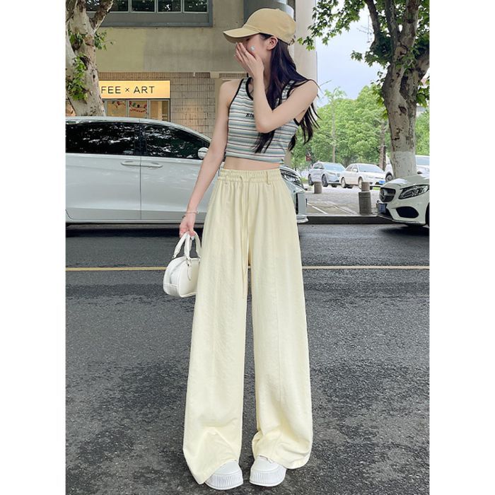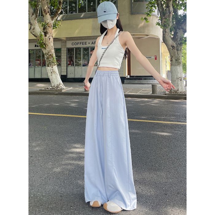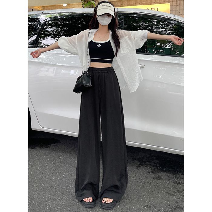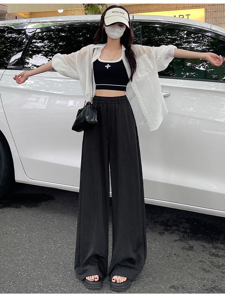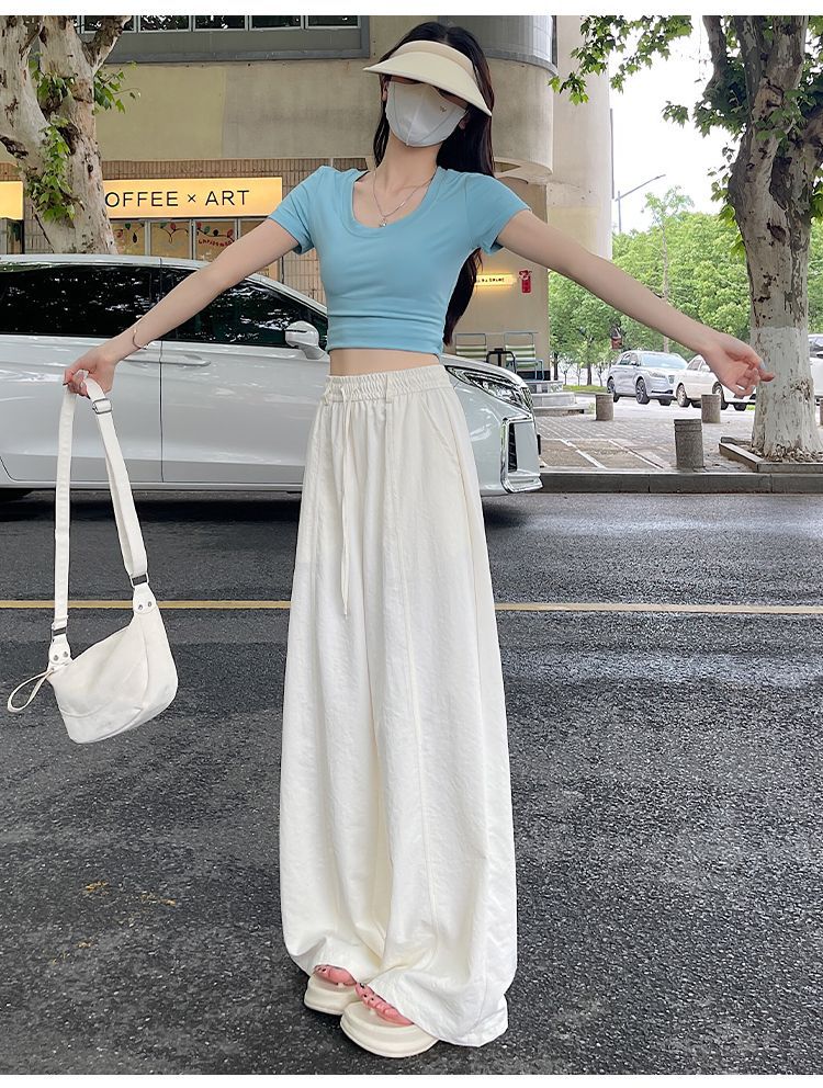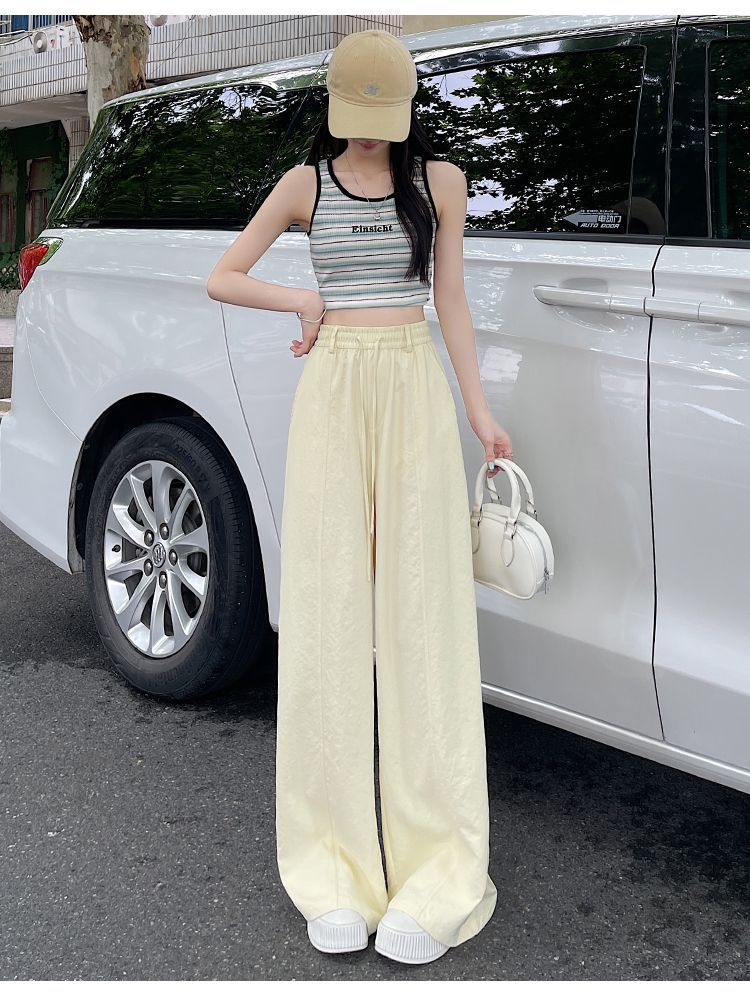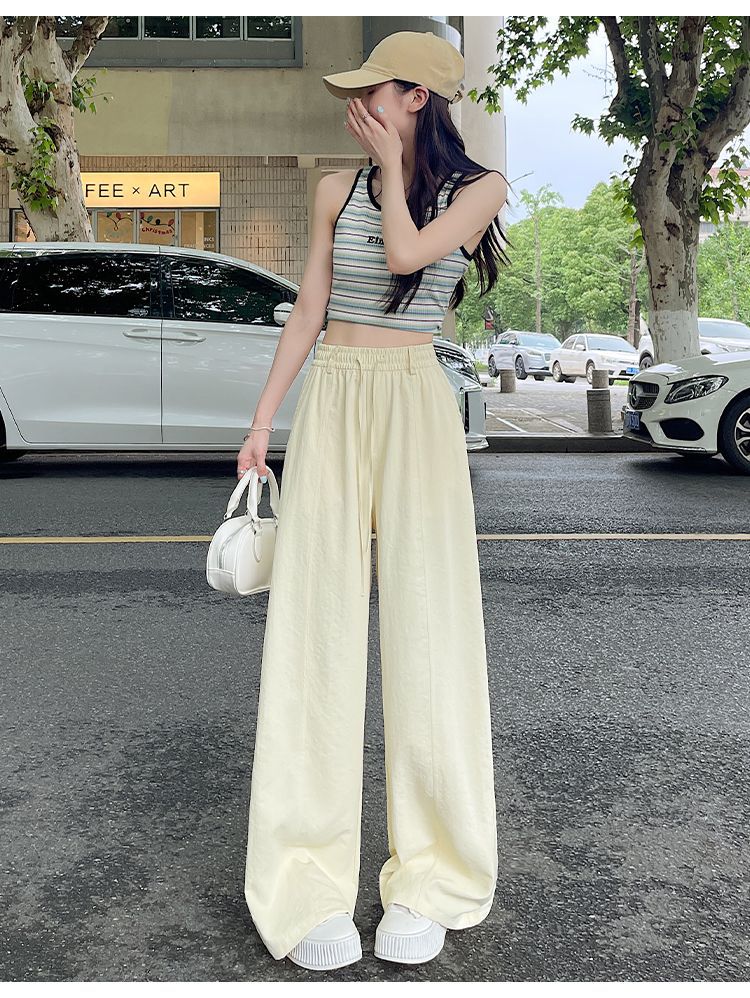 여성용 속건성 와이드 팬츠 여름 얇은 2025 새로운 하이 웨이스트 캐주얼 슬림 스포츠 하이킹 바지 미드 라인 오버올스토어 가기