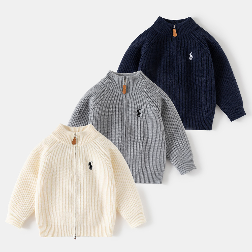 소년 스웨터 2025 가을 새로운 어린이 한국어 버전 솔리드 컬러 트위스트 코트 가을 어린이 만화 수 놓은 탑