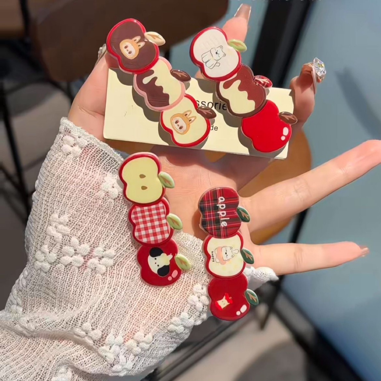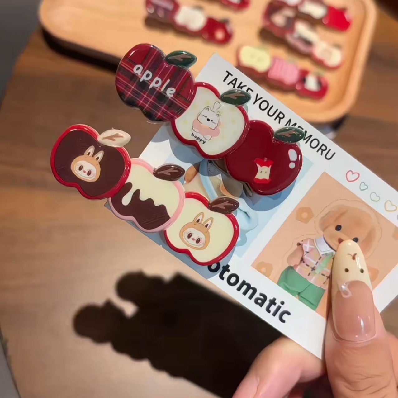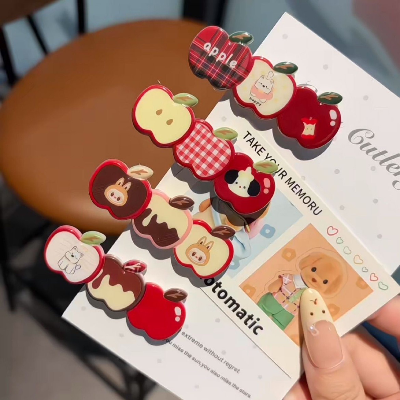 여성용 귀여운 만화 사과 머리핀 레드 인 소녀 하트 덕빌 클립 사이드 머리 앞머리 클립 헤어 액세서리