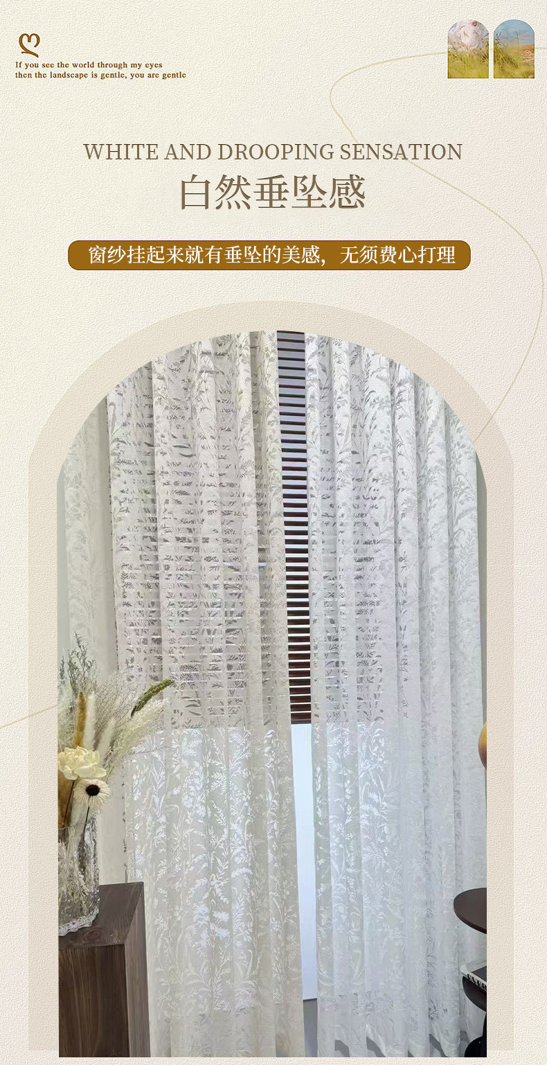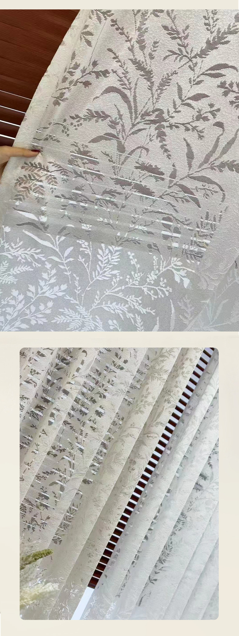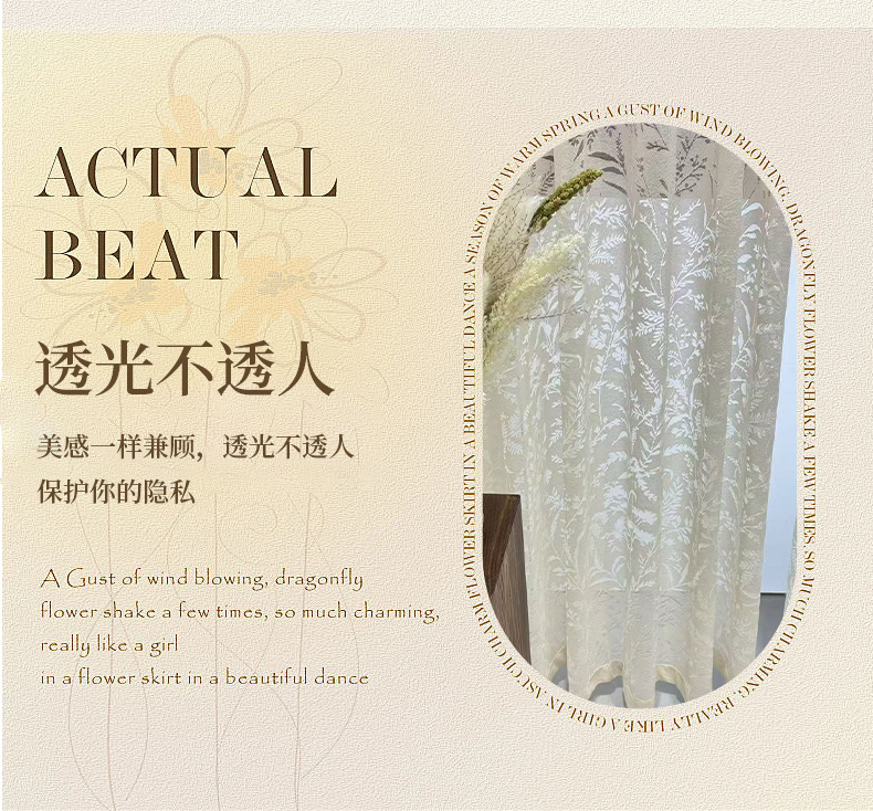 커튼과 거즈 커튼은 빛을 투과하지만 거실과 침실에서는 불투명합니다.완제품 창문 스크린은 세련된 중공 인쇄 흰색 커튼 제조업체입니다.스토어 가기