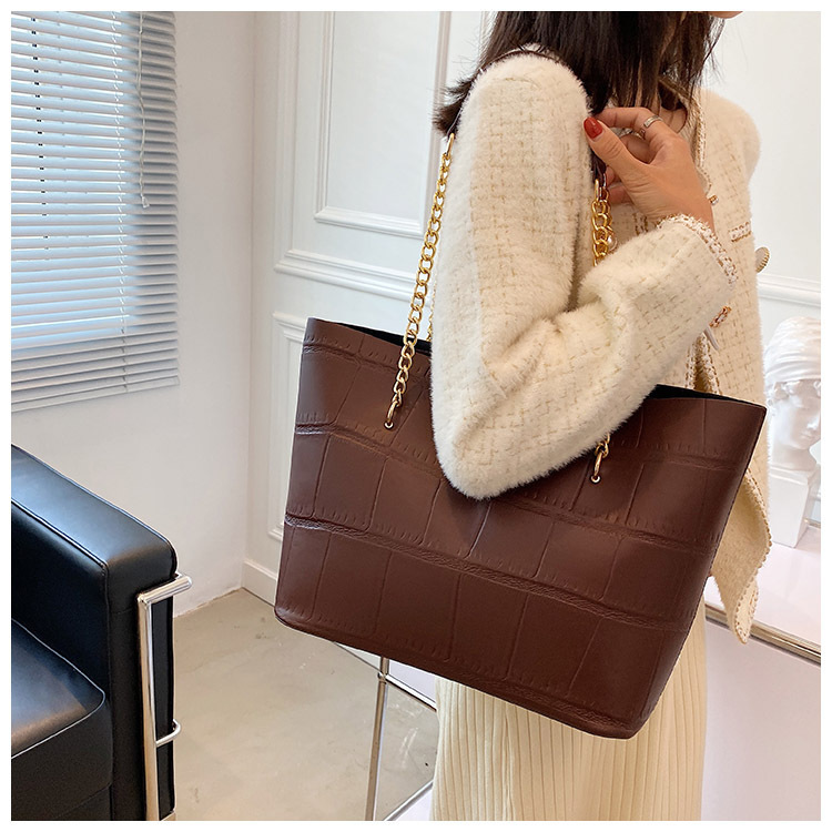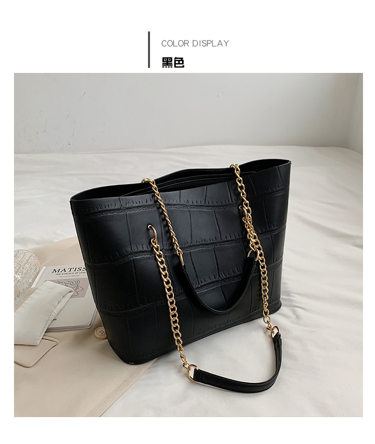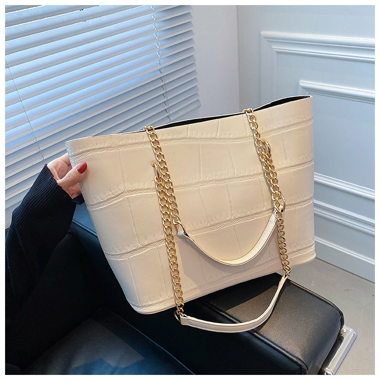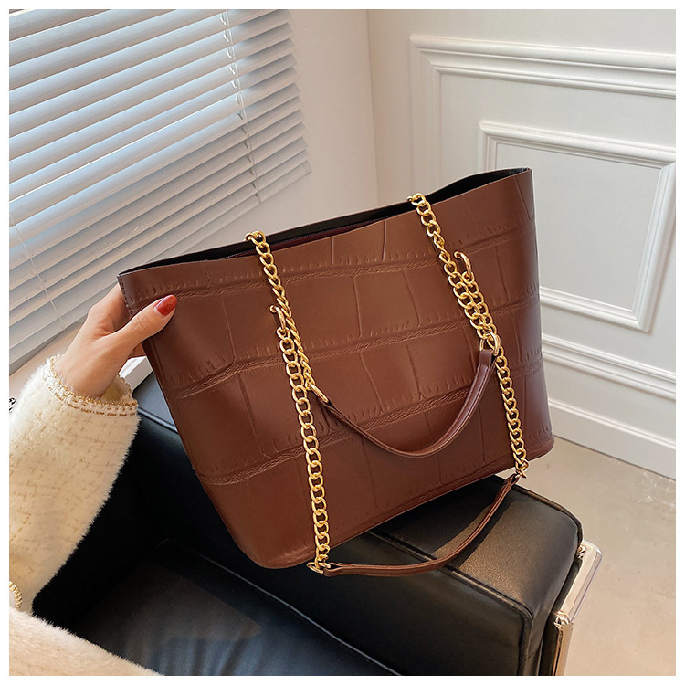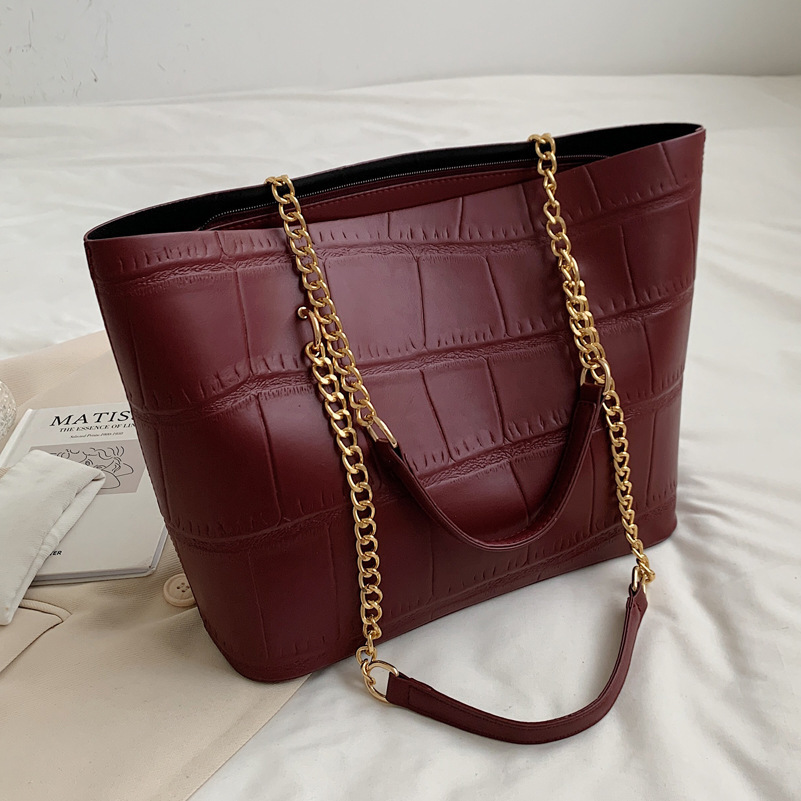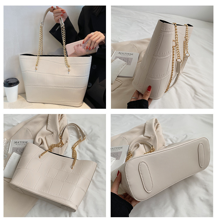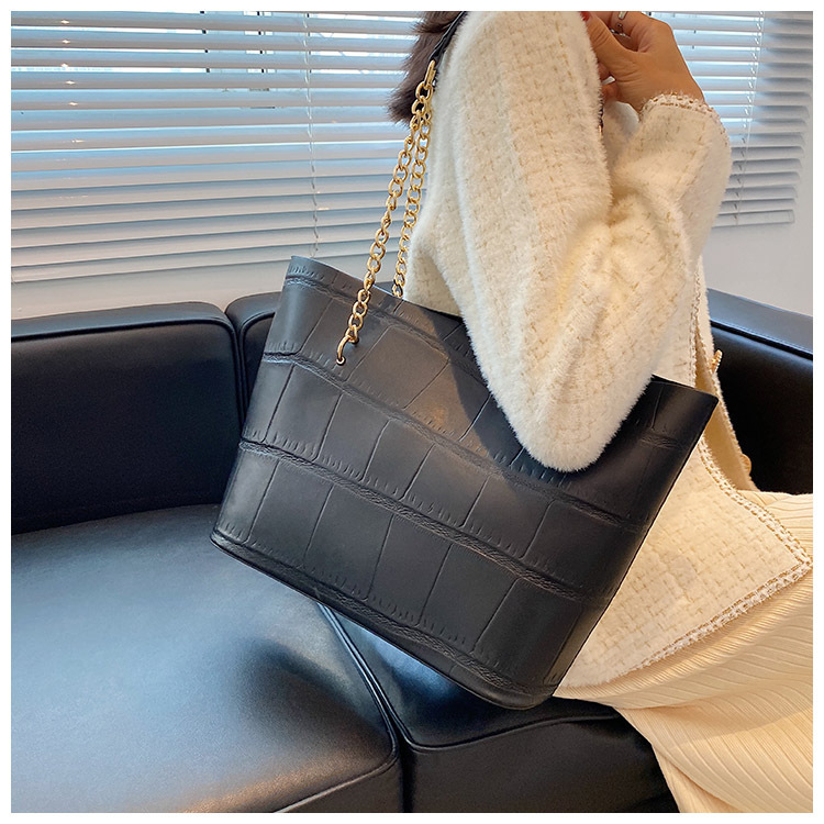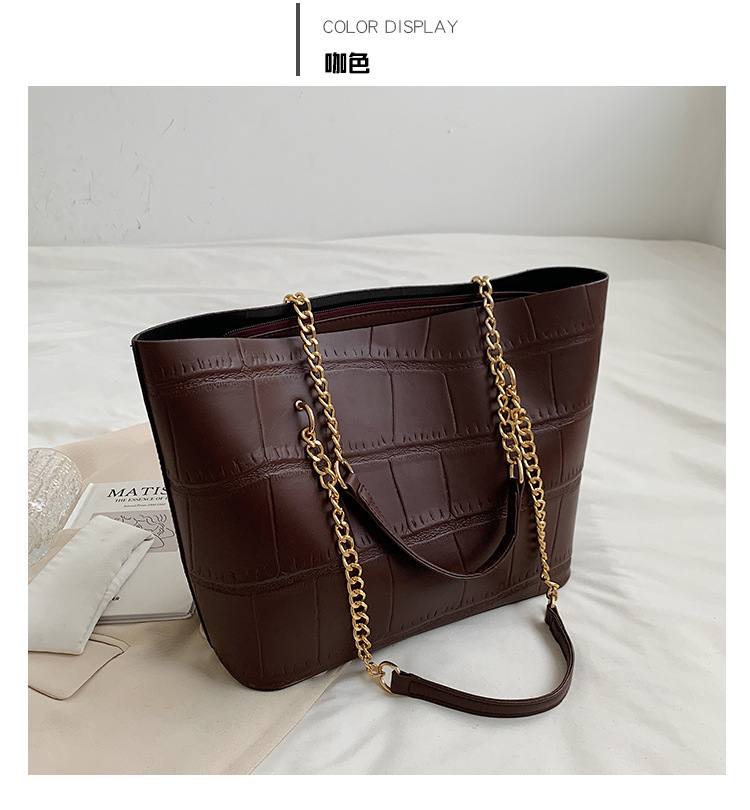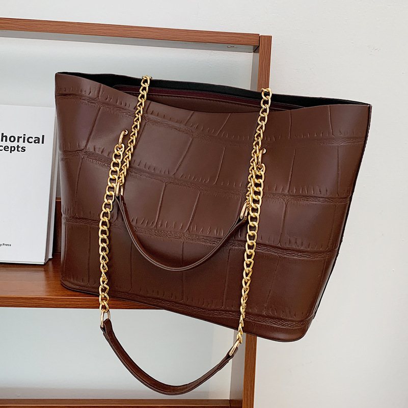 국경 간 2025 새로운 스톤 패턴 여성 가방 유럽과 미국의 복고풍 통근 숄더백 간단한 대용량 체인 토트 백