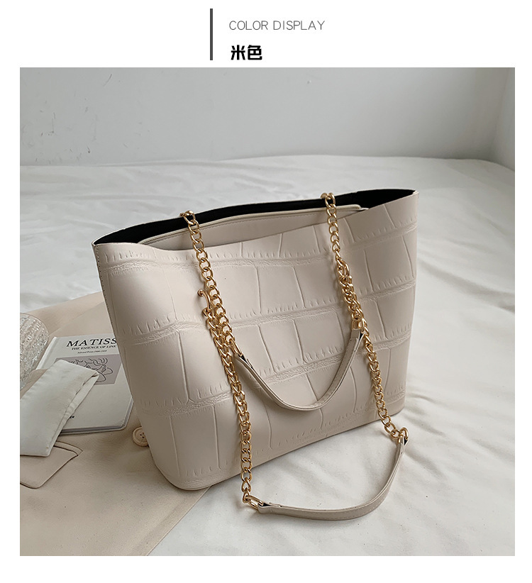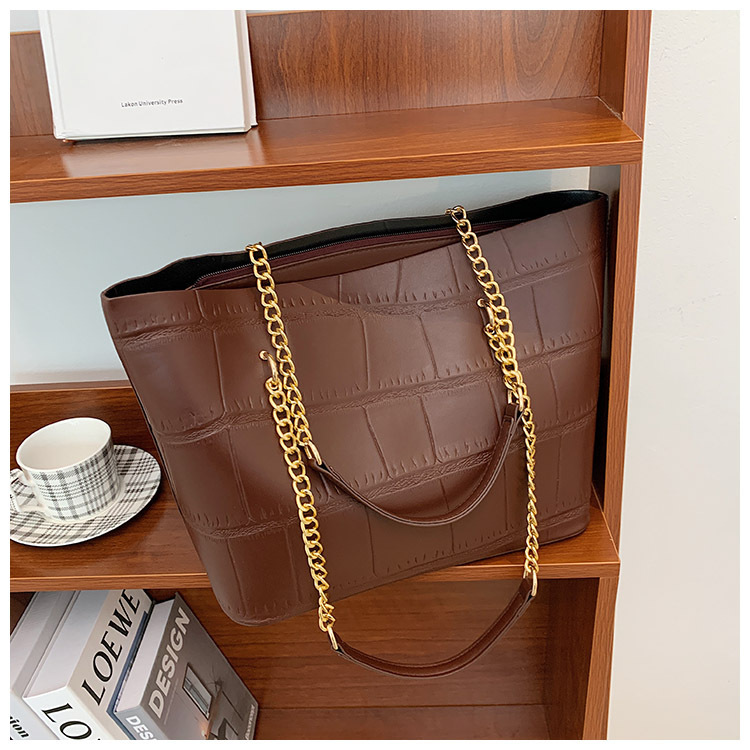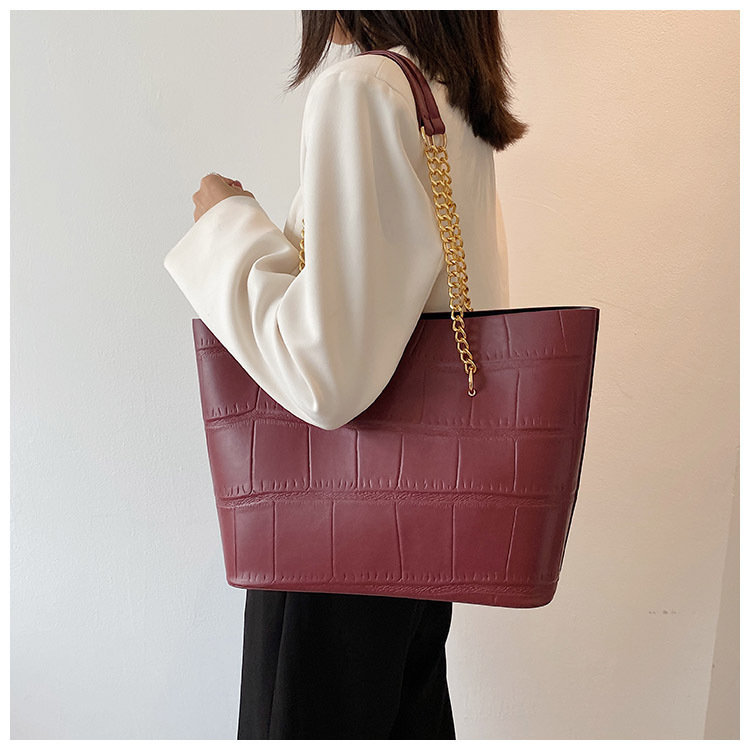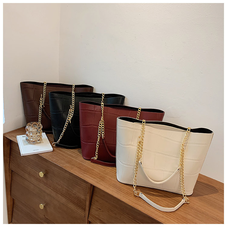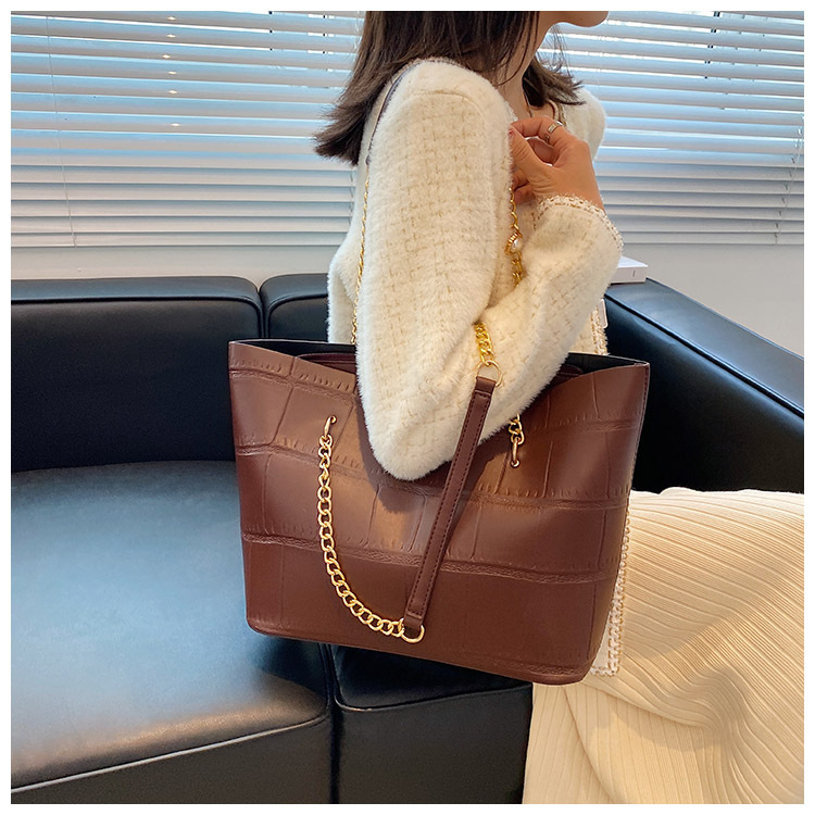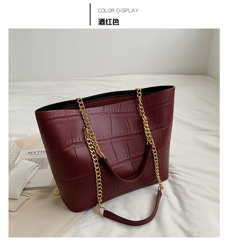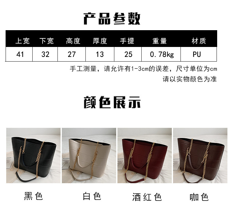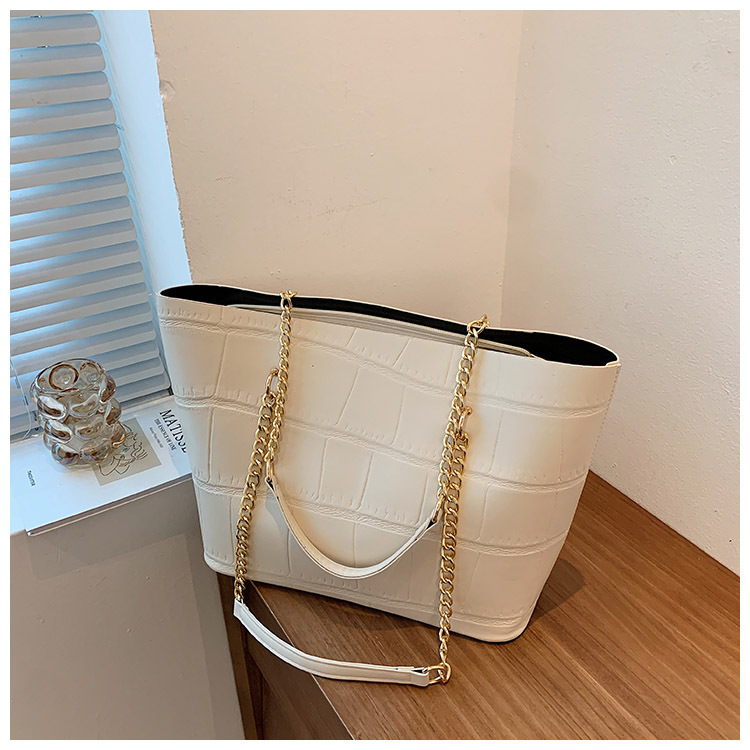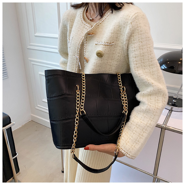 국경 간 2025 새로운 스톤 패턴 여성 가방 유럽과 미국의 복고풍 통근 숄더백 간단한 대용량 체인 토트 백