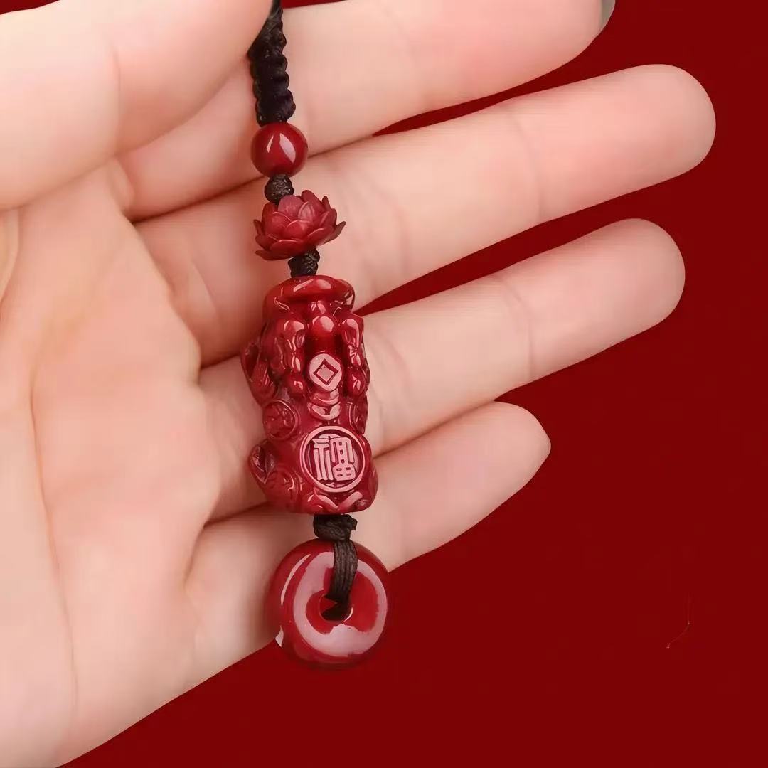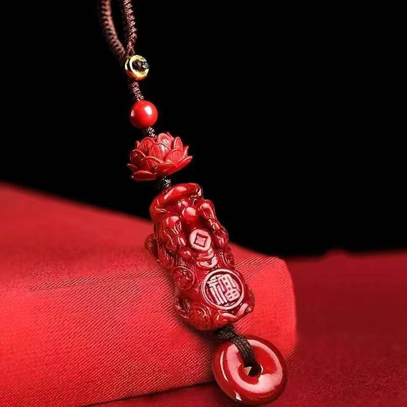 천연 원석 진사 Pixiu 연꽃 안전 키 체인 고함량 퍼플 골드 제국 레드 샌드 펜던트 도매