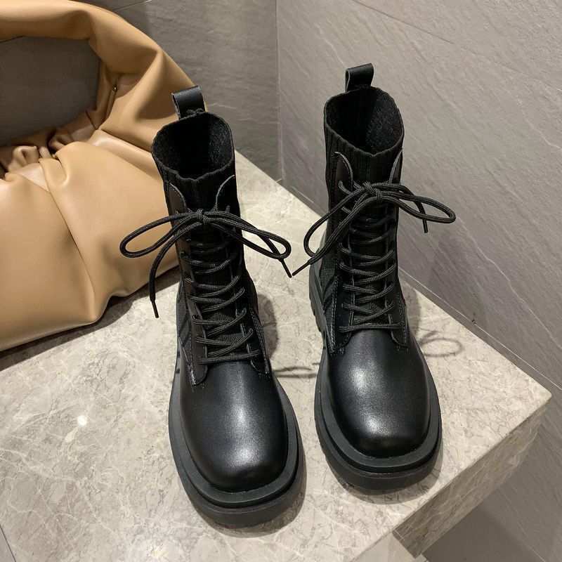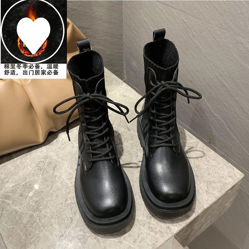 두꺼운 밑창의 작은 가죽 신발 마틴 부츠 여성 가을, 겨울 영국 스타일 2023 니트 화이트 부츠 플러스 벨벳 짧은 부츠 여성스토어 가기