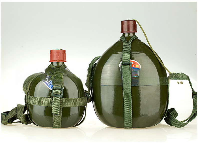 옛날식 알루미늄 주전자, 두꺼운 스트랩 주전자, 노동 보호 군사 훈련 야외 스포츠 대용량 편리한 군용 녹색 알루미늄 주전자