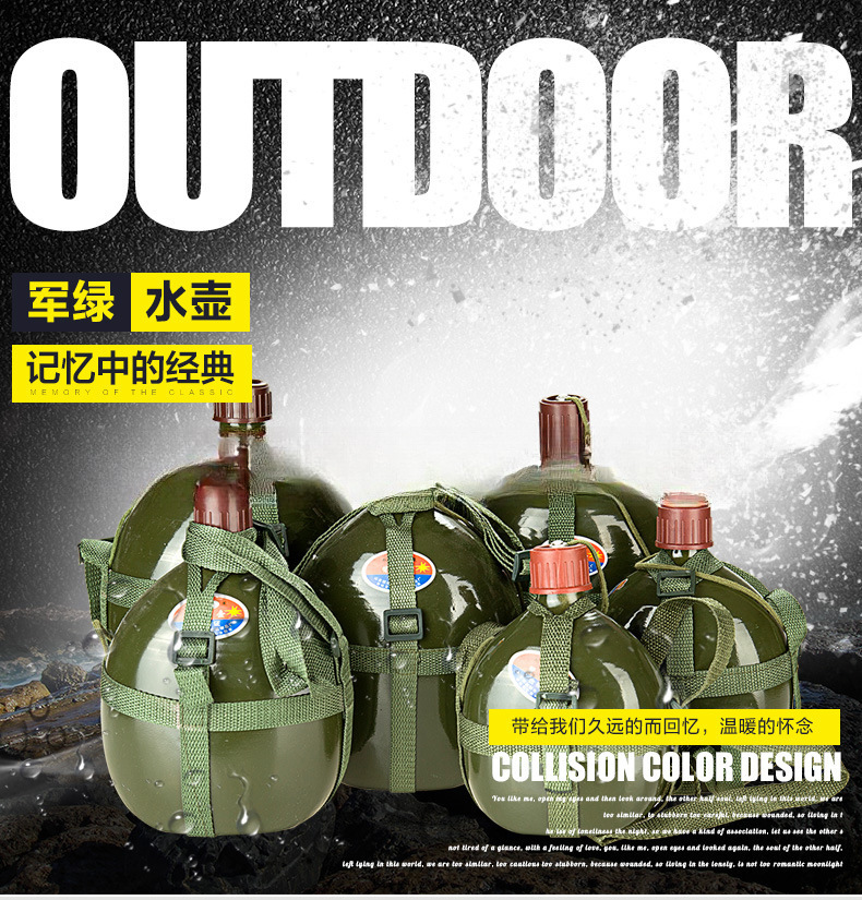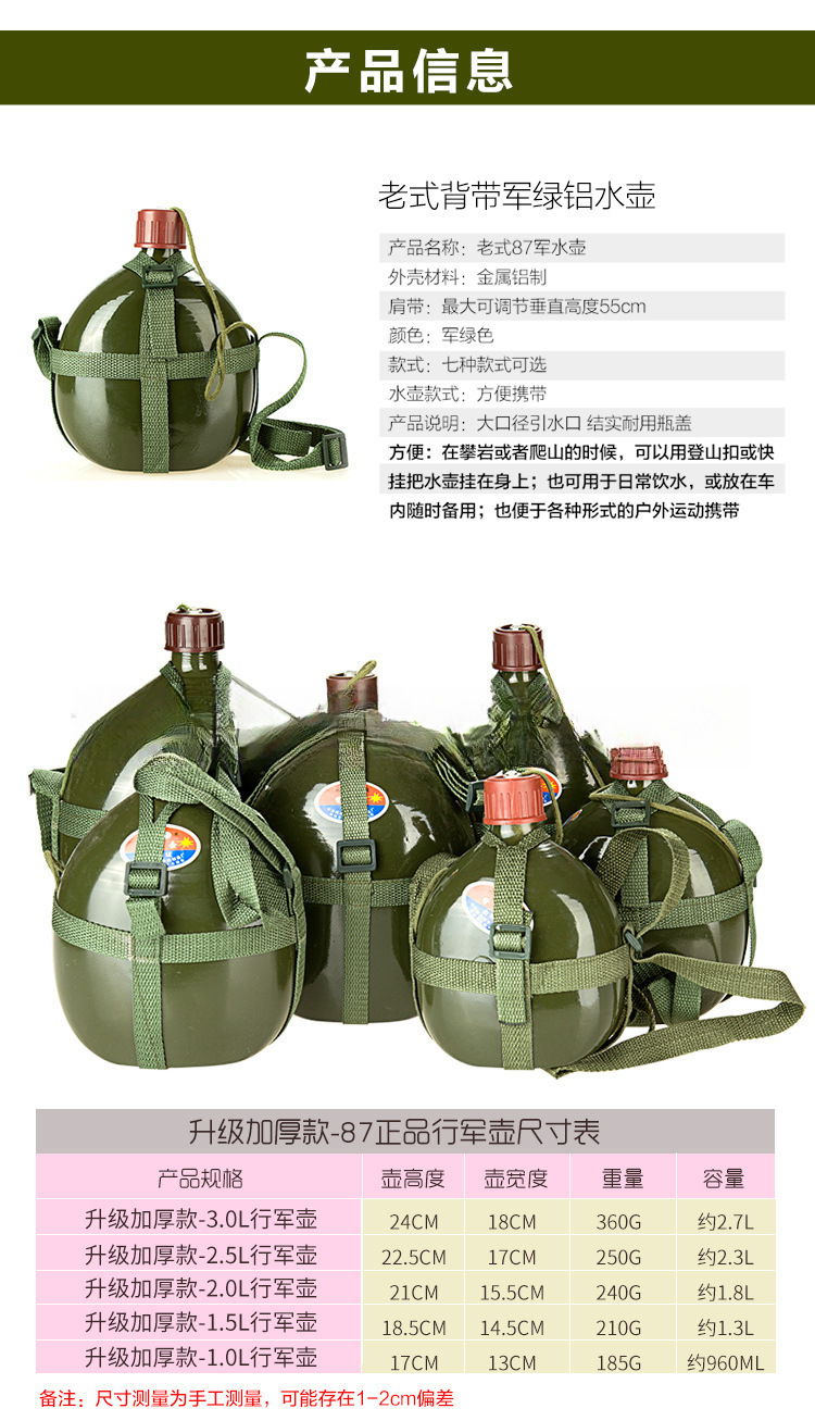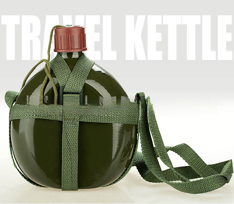 옛날식 알루미늄 주전자, 두꺼운 스트랩 주전자, 노동 보호 군사 훈련 야외 스포츠 대용량 편리한 군용 녹색 알루미늄 주전자스토어 가기