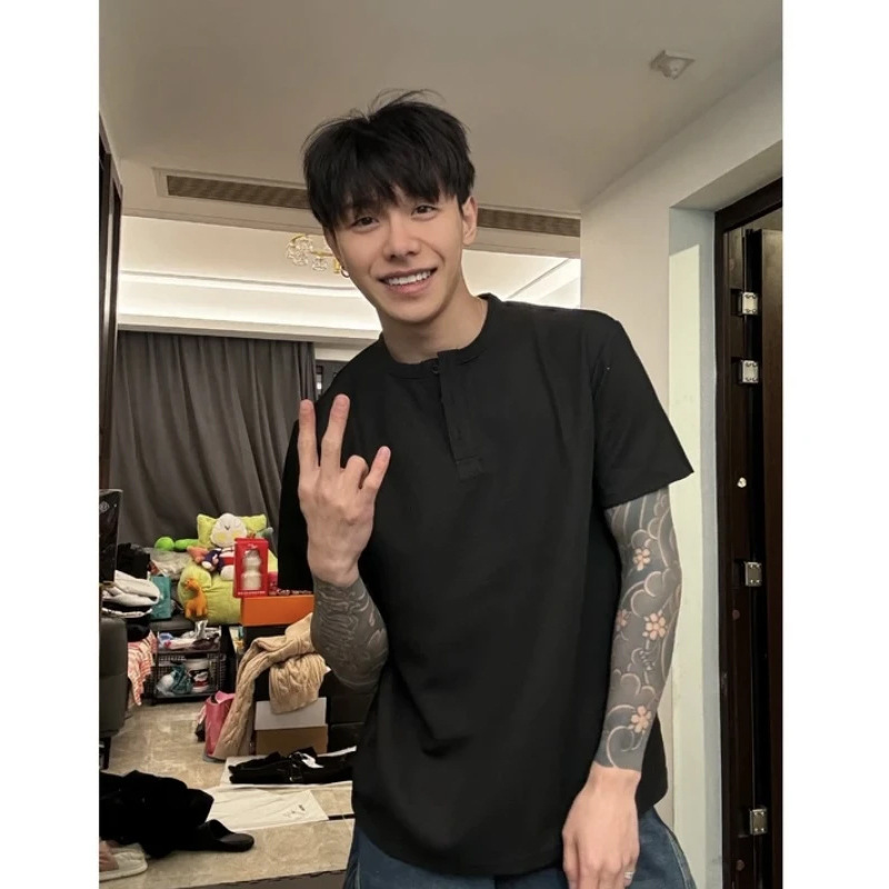 아메리칸 헨리 칼라 반팔 남성 여름 슬림핏 라이트 그레이 오른쪽 어깨 티셔츠 클린핏 와플 바닥 셔츠스토어 가기