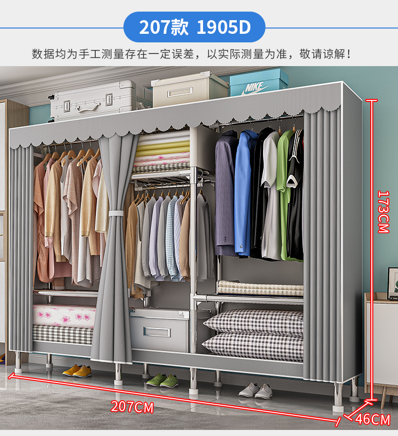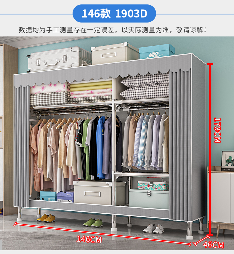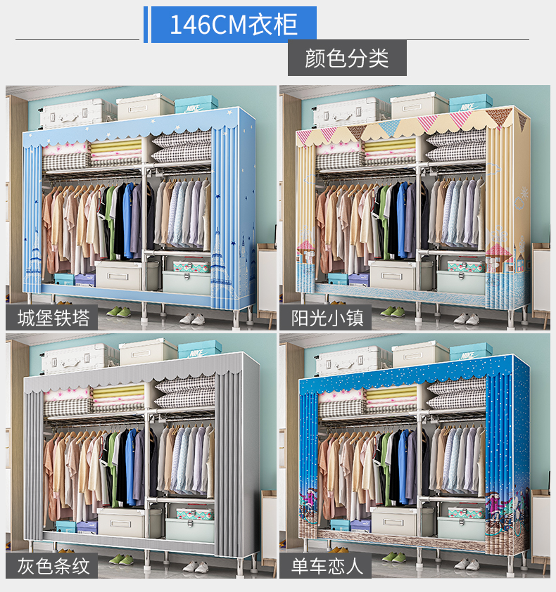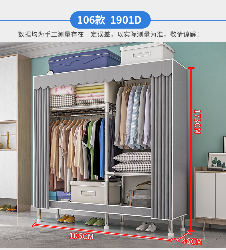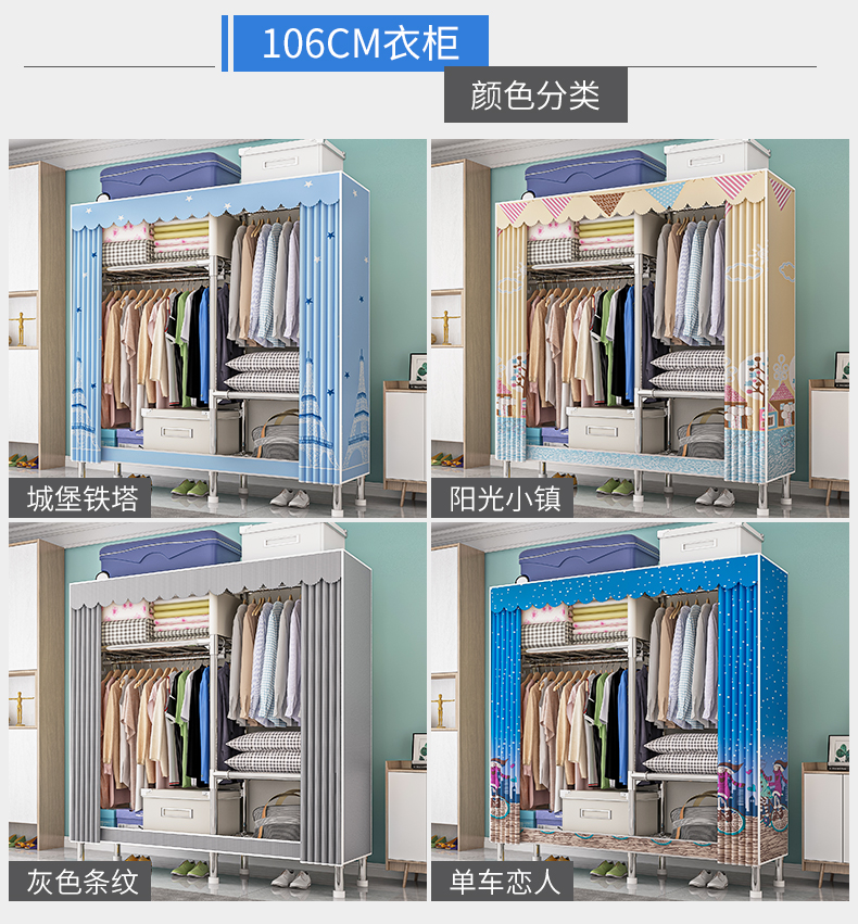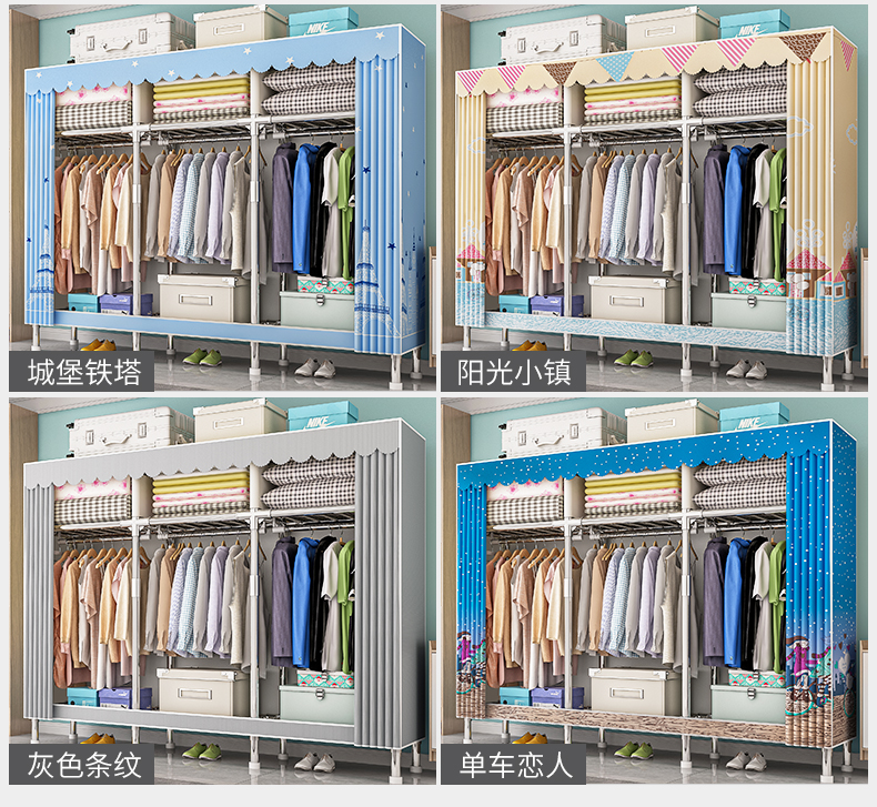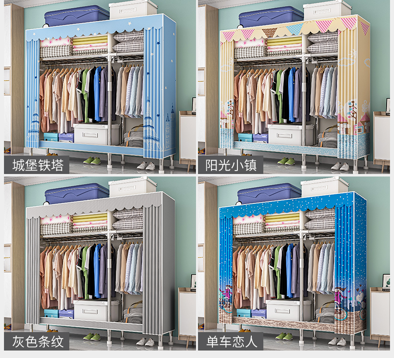 옷장, 가정용 침실, 간단한 천 옷장, 견고하고 내구성이 뛰어난 임대 주택, 소형 가정용 옷장, 조립식 보관 캐비닛