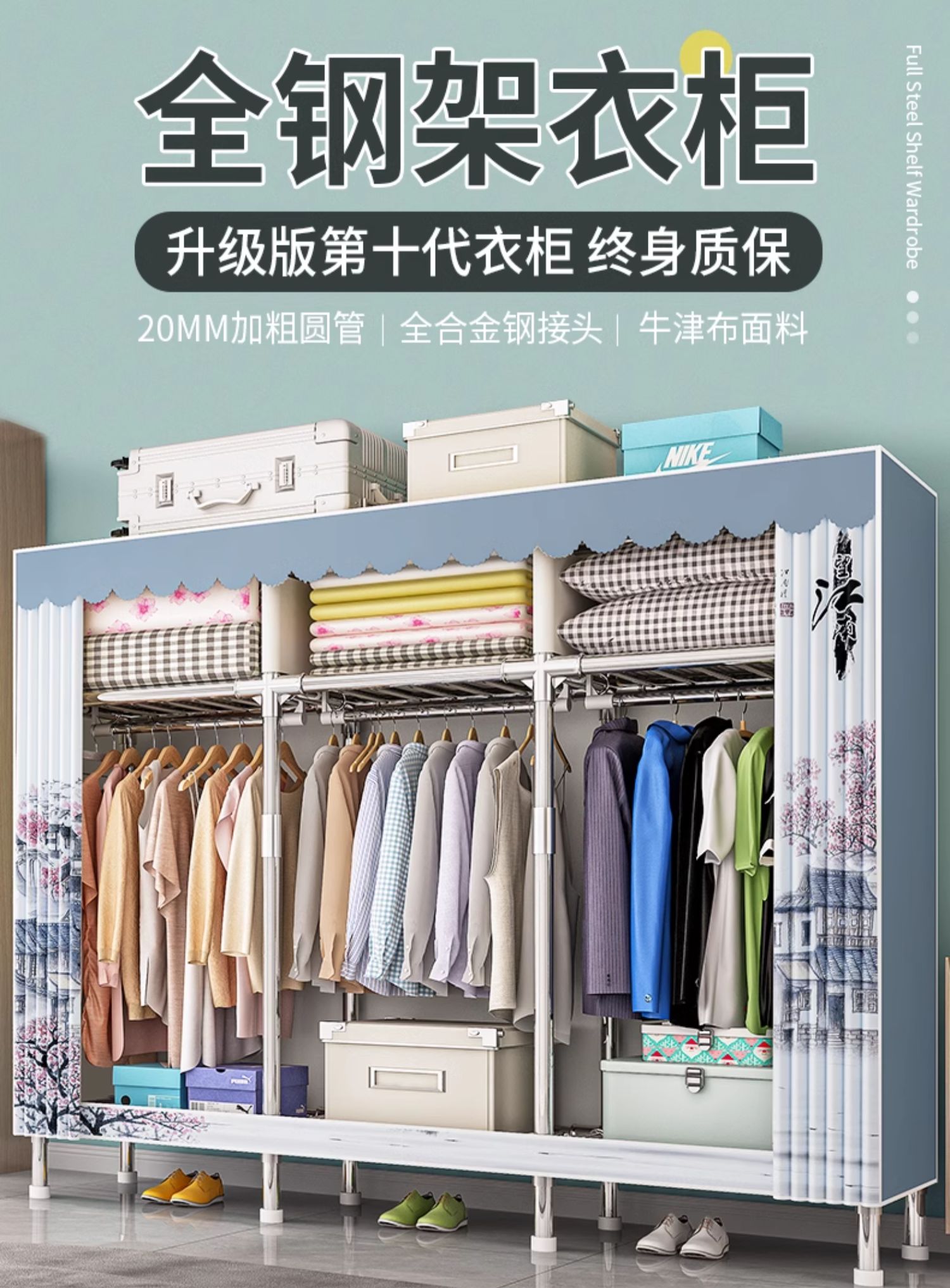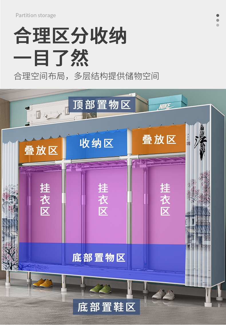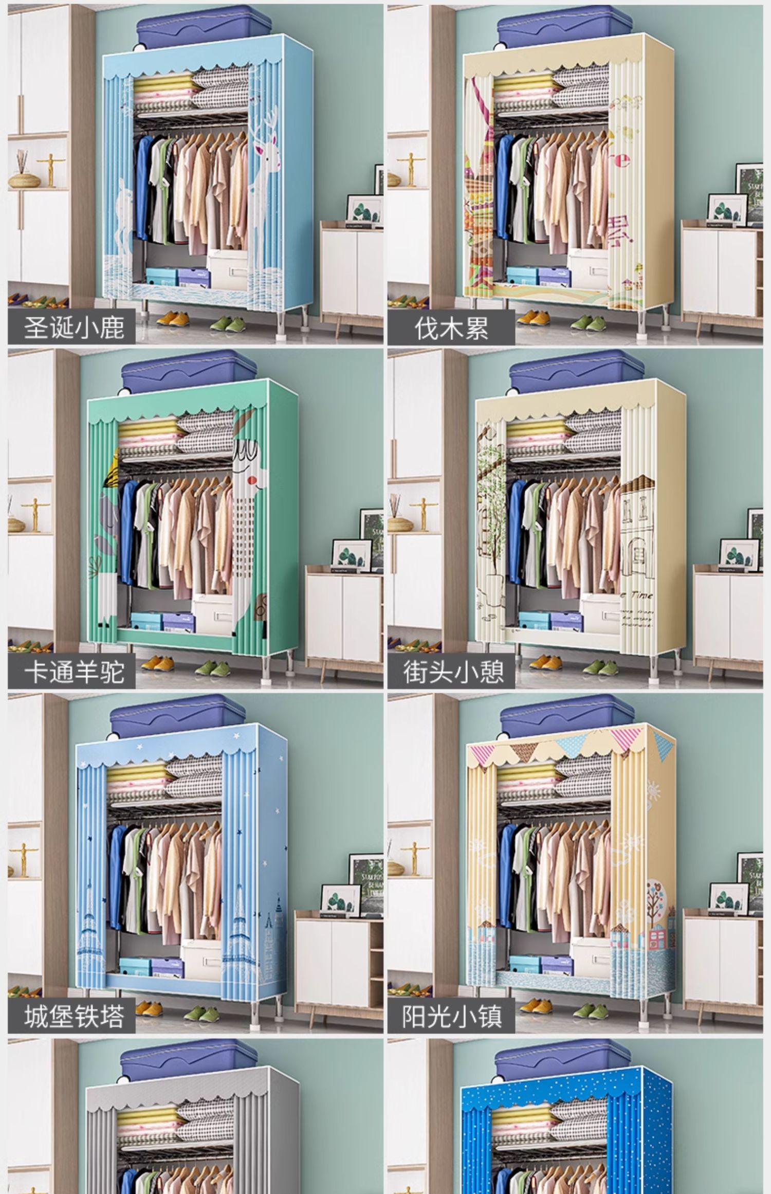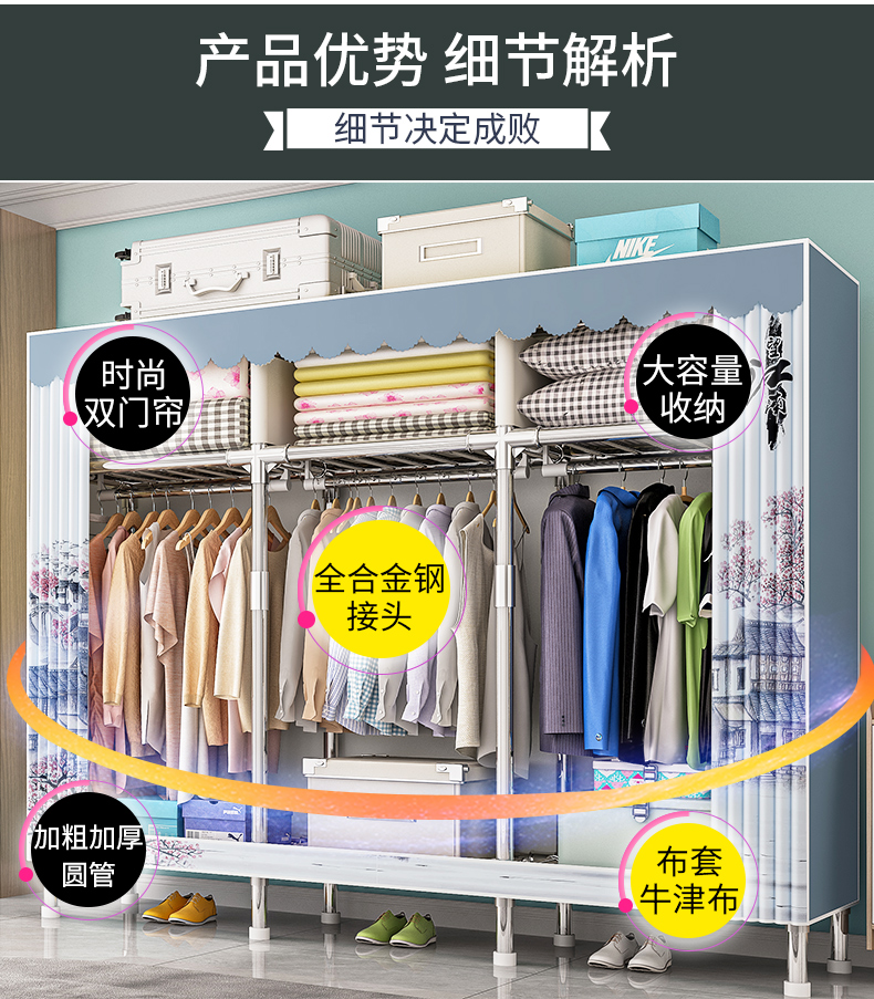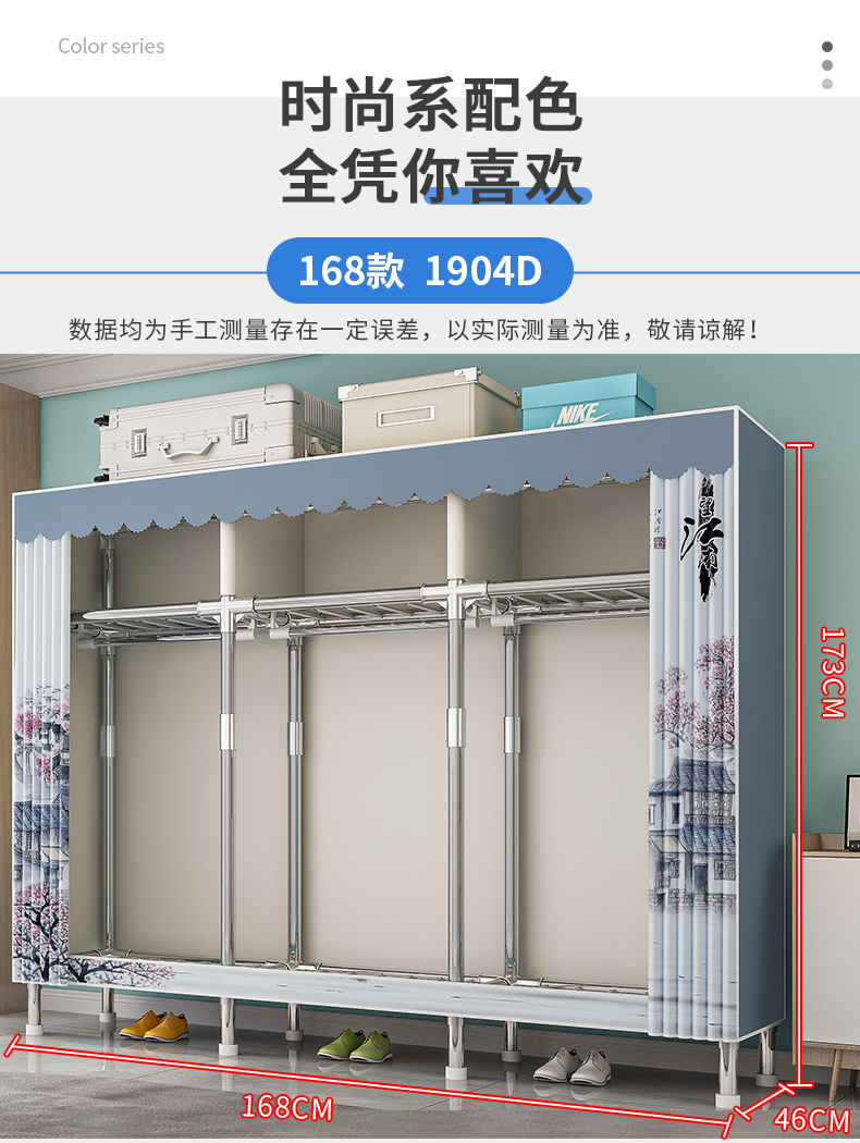 옷장, 가정용 침실, 간단한 천 옷장, 견고하고 내구성이 뛰어난 임대 주택, 소형 가정용 옷장, 조립식 보관 캐비닛