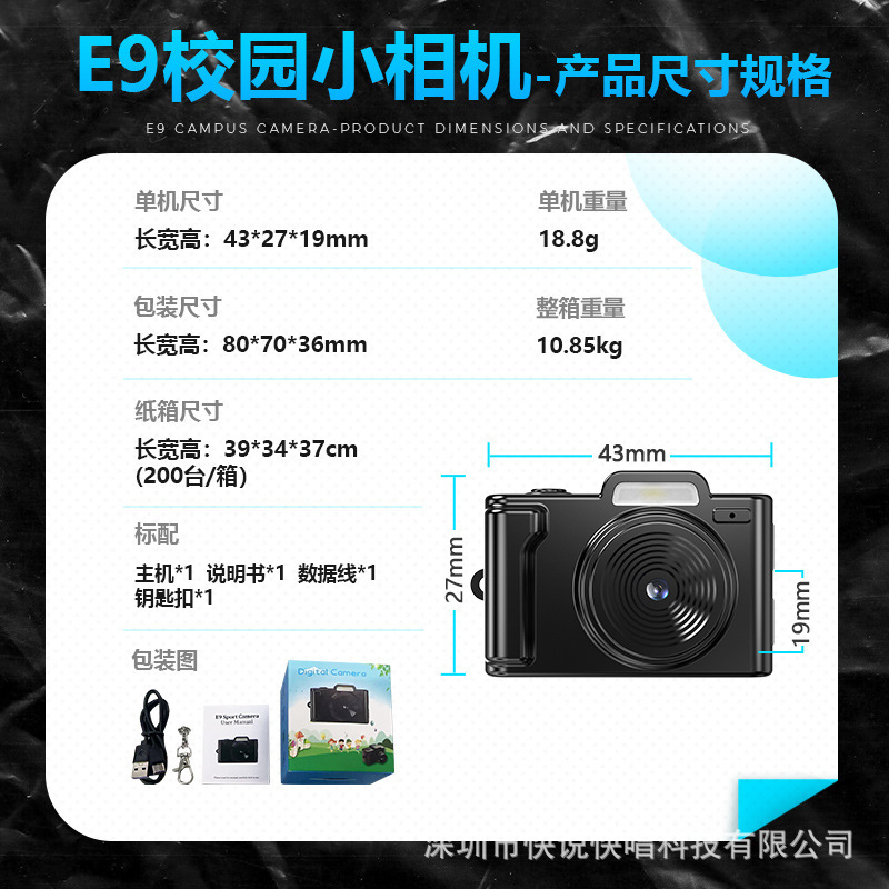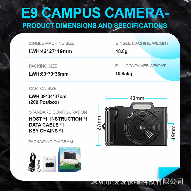 국경 간 E9 캠퍼스 CCD 학생 파티 디지털 카메라 저렴한 보급형 고화질 미러리스 비디오 녹화 도구 도매스토어 가기
