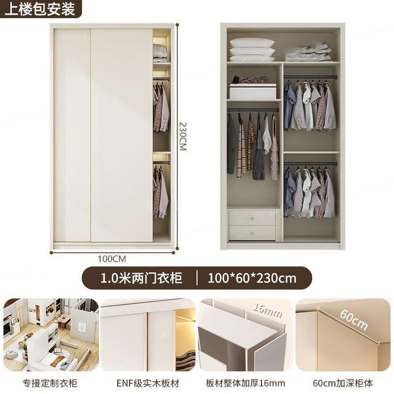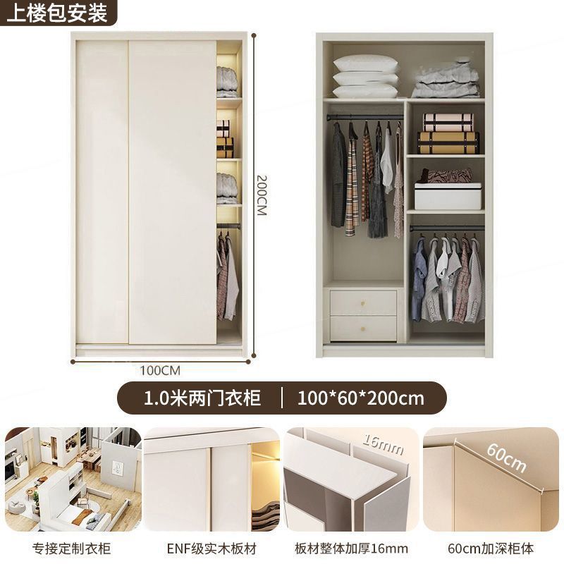 단단한 나무 생태 보드 ENF 등급 2025 새로운 슬라이딩 도어 옷장 홈 침실 완제품 크림 스타일 풀 행잉