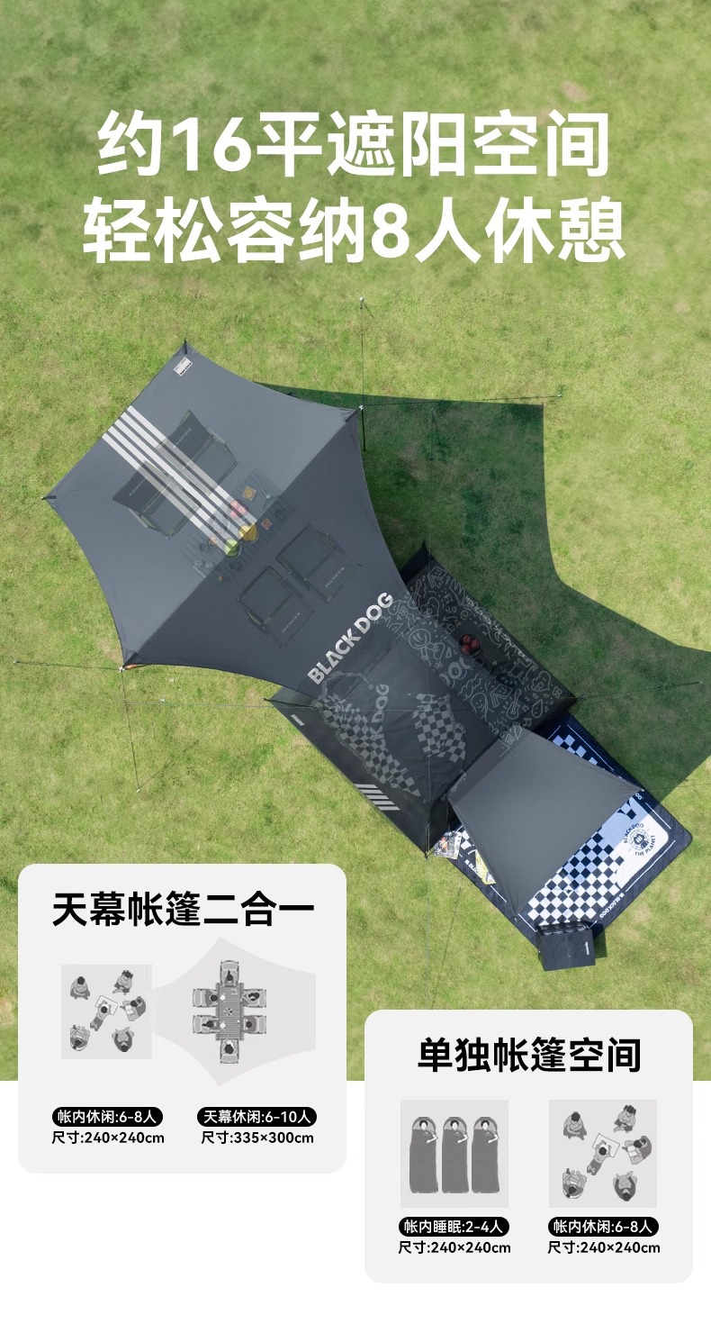 Blackdog 검은 개 텐트 야외 캠핑 밤새도록 휴대용 접이식 캐노피 투인원 빠른 오픈 캠핑 장비