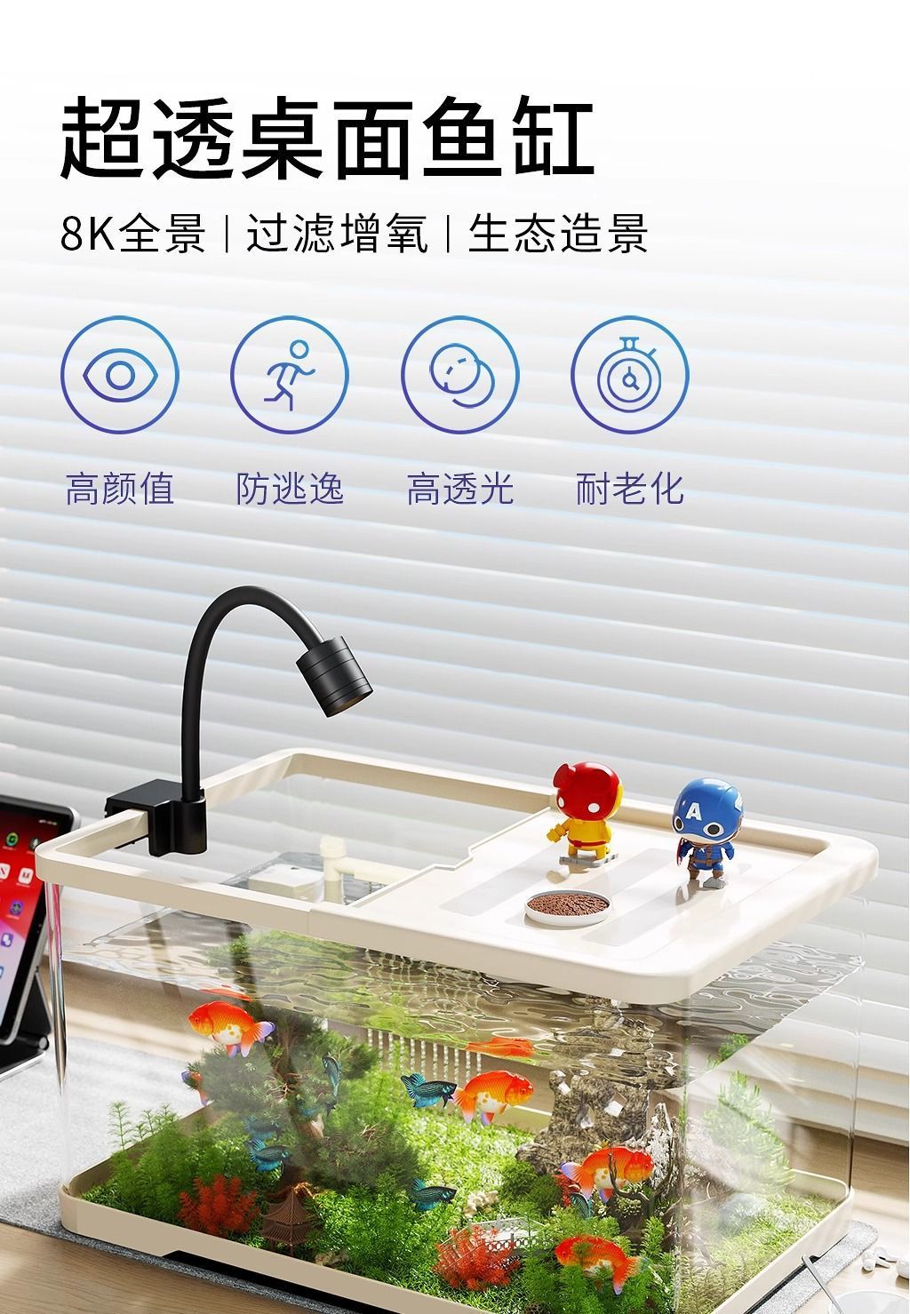 물고기 탱크 작은 거실 2025 새로운 가정용 조경 뚜껑이있는 전체 생태 물 탱크 투명 데스크탑 금붕어 탱크