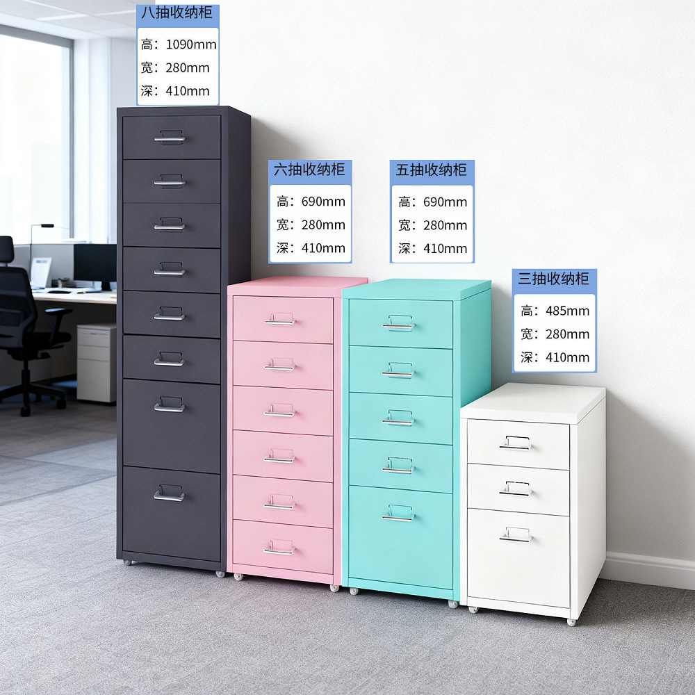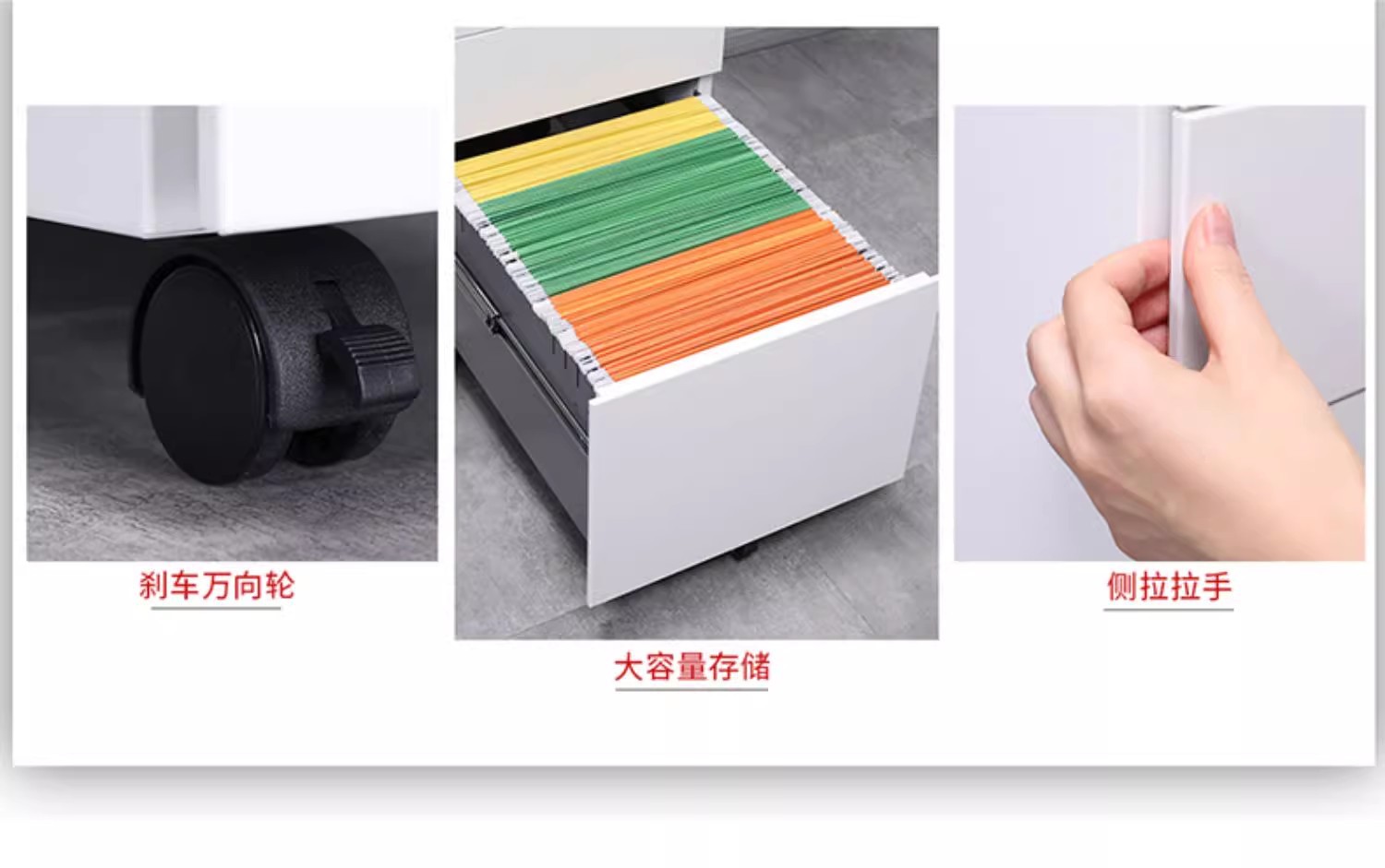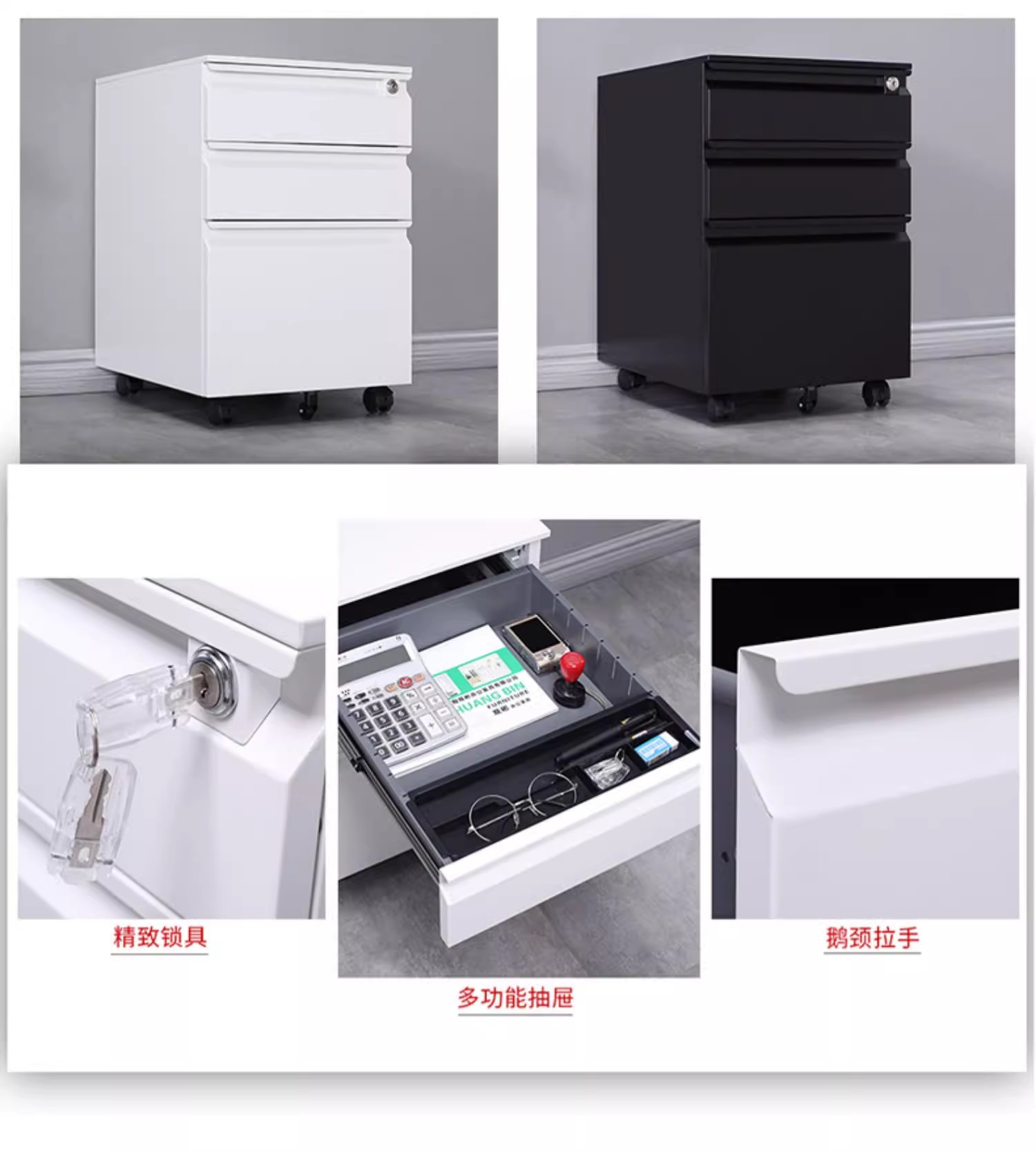 이동식 서랍 캐비닛 파일 캐비닛 이동식 보관 캐비닛 책상 아래 보관 캐비닛 낮은 캐비닛 사무실 잠금 장치가 있는 범용 휠 스틸