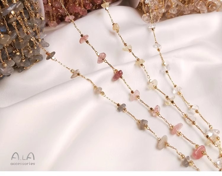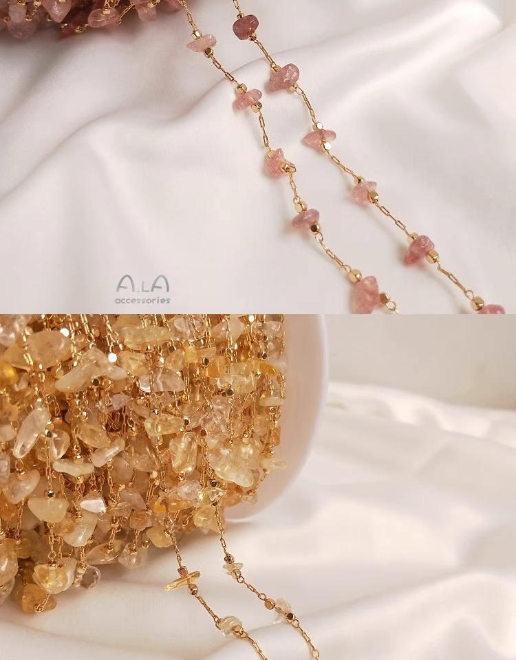 천연 딸기 크리스탈 황수정 색상 보존 체인 14K 금도금 진짜 금 수제 느슨한 체인 diy 팔찌 목걸이 소재스토어 가기