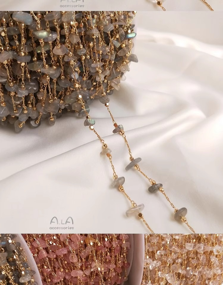 • L72-5 사각 비드 클립 래브라도라이트 자갈 체인 50cm