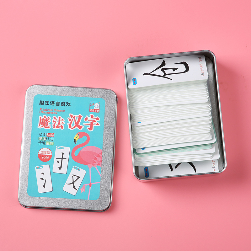 本款魔法汉字卡片内含120张卡片+1张说明书+1个铁盒,