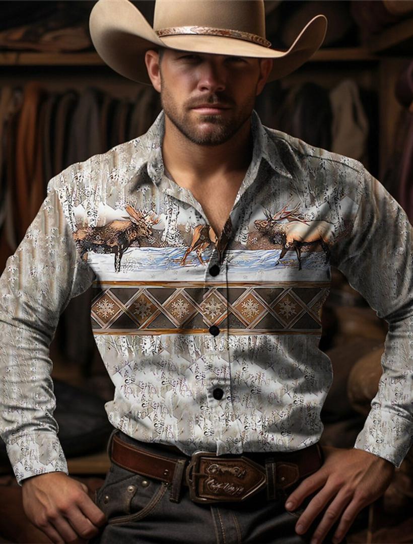 2025 국경 간 인기 판매 간단한 데님 스타일 남성 긴팔 라펠 셔츠 3D 디지털 인쇄 소스 공장스토어 가기
