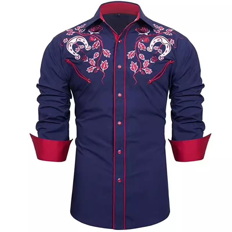 2025 국경 간 인기 판매 간단한 데님 스타일 남성 긴팔 라펠 셔츠 3D 디지털 인쇄 소스 공장