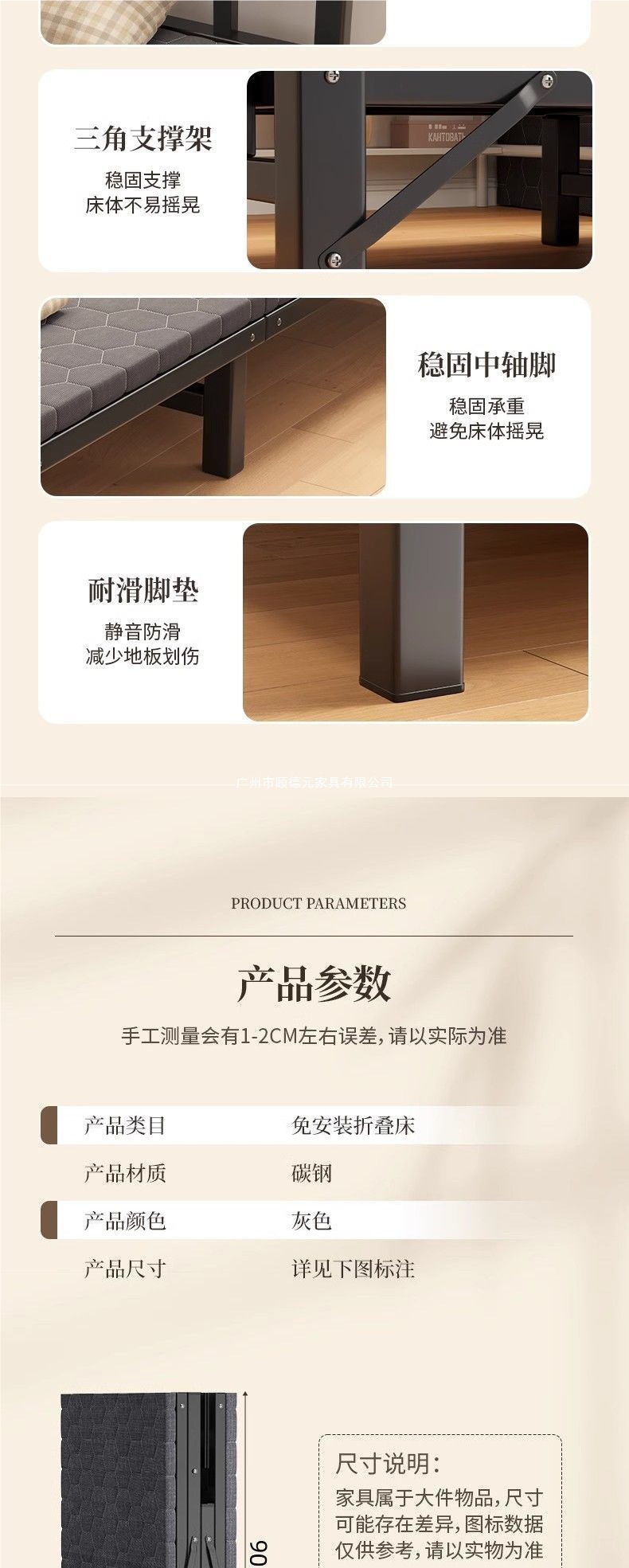 홈 오피스 낮잠 침대 임대 주택 휴대용 성인 철제 침대 동반자 접이식 침대 낮잠 침대 싱글 침대
