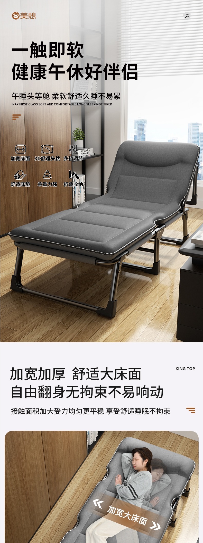 접이식 침대, 1인용 사무실 점심시간, 가정용 캠프 침대, 간이 낮잠 동반자, 다기능 휴대용 안락의자