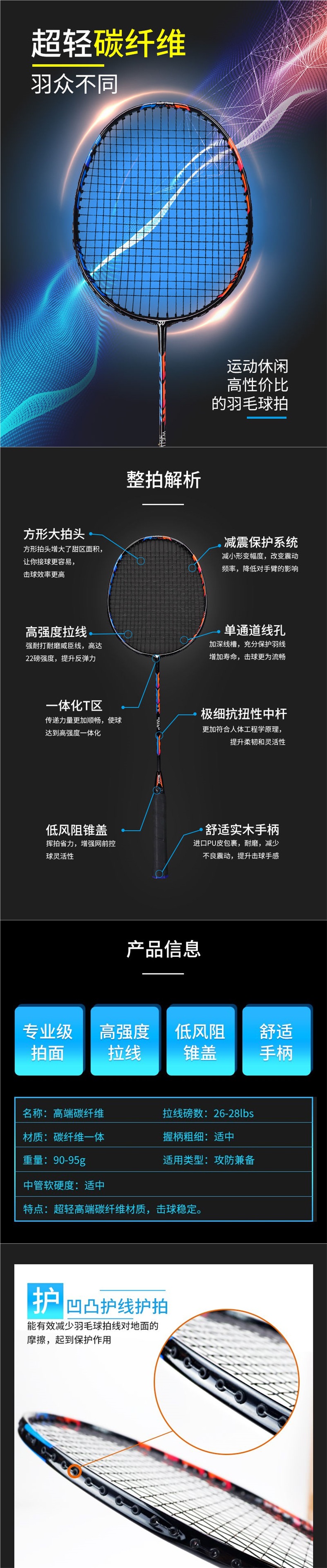 • 카본 복합 일체형 라켓(볼 6개 + 라켓 가방 + 라켓 헤드 스티커 1개 포함)