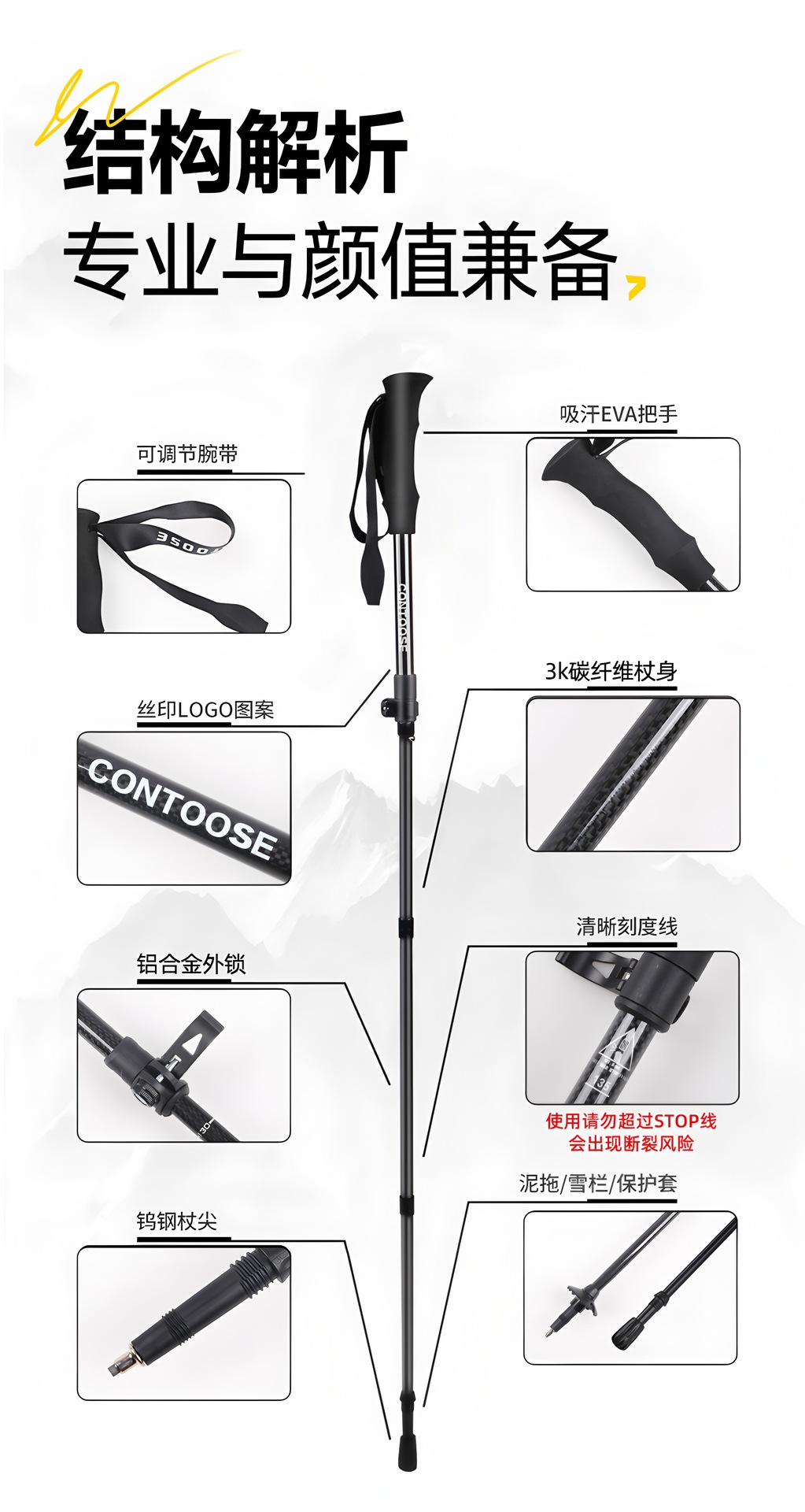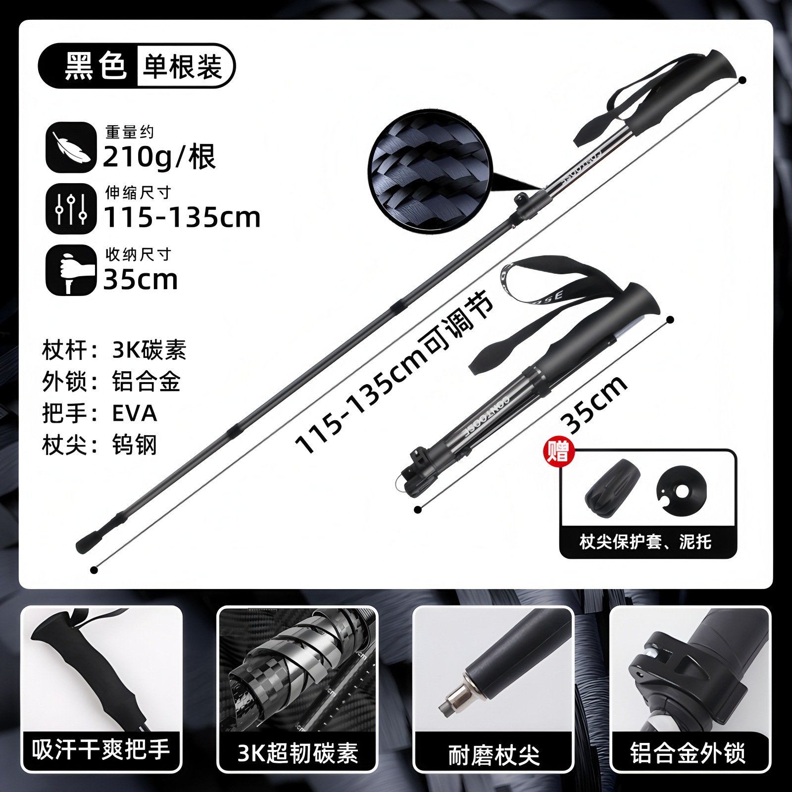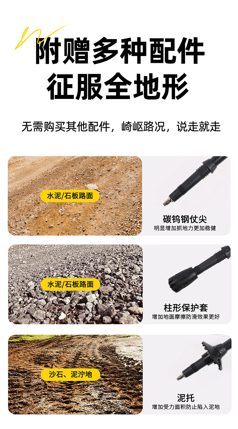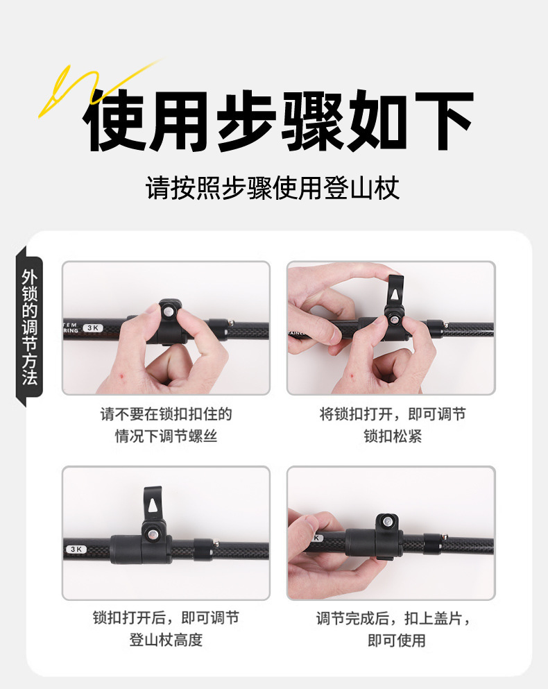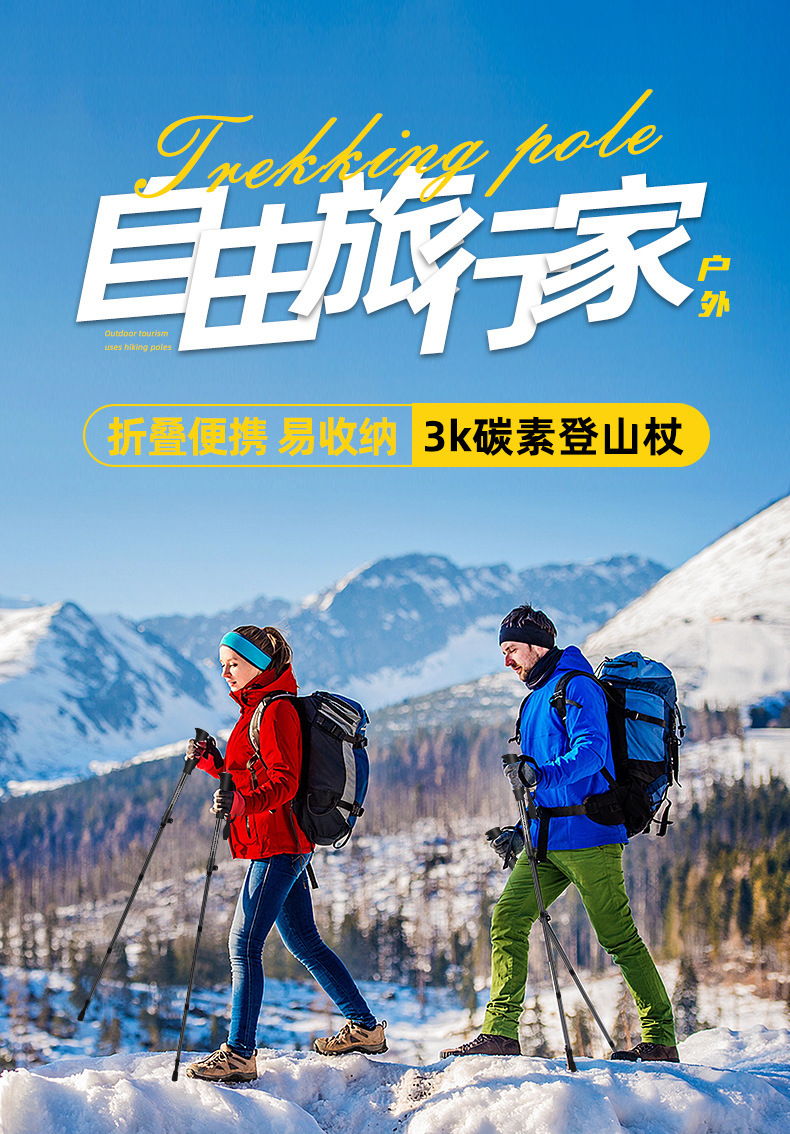 3K 탄소 섬유 트레킹 스틱 초경량 휴대용 지팡이 야외 접이식 미끄럼 방지 지팡이 다기능 트레킹 스틱