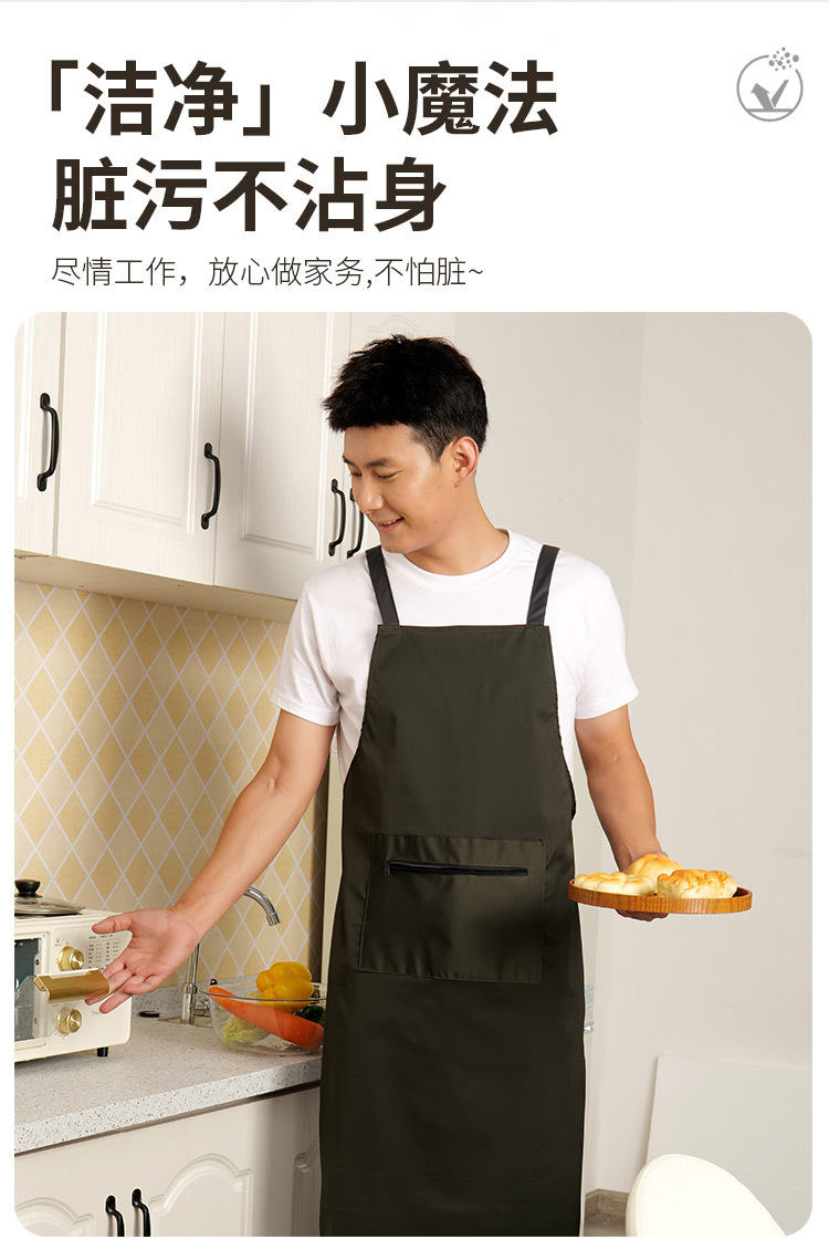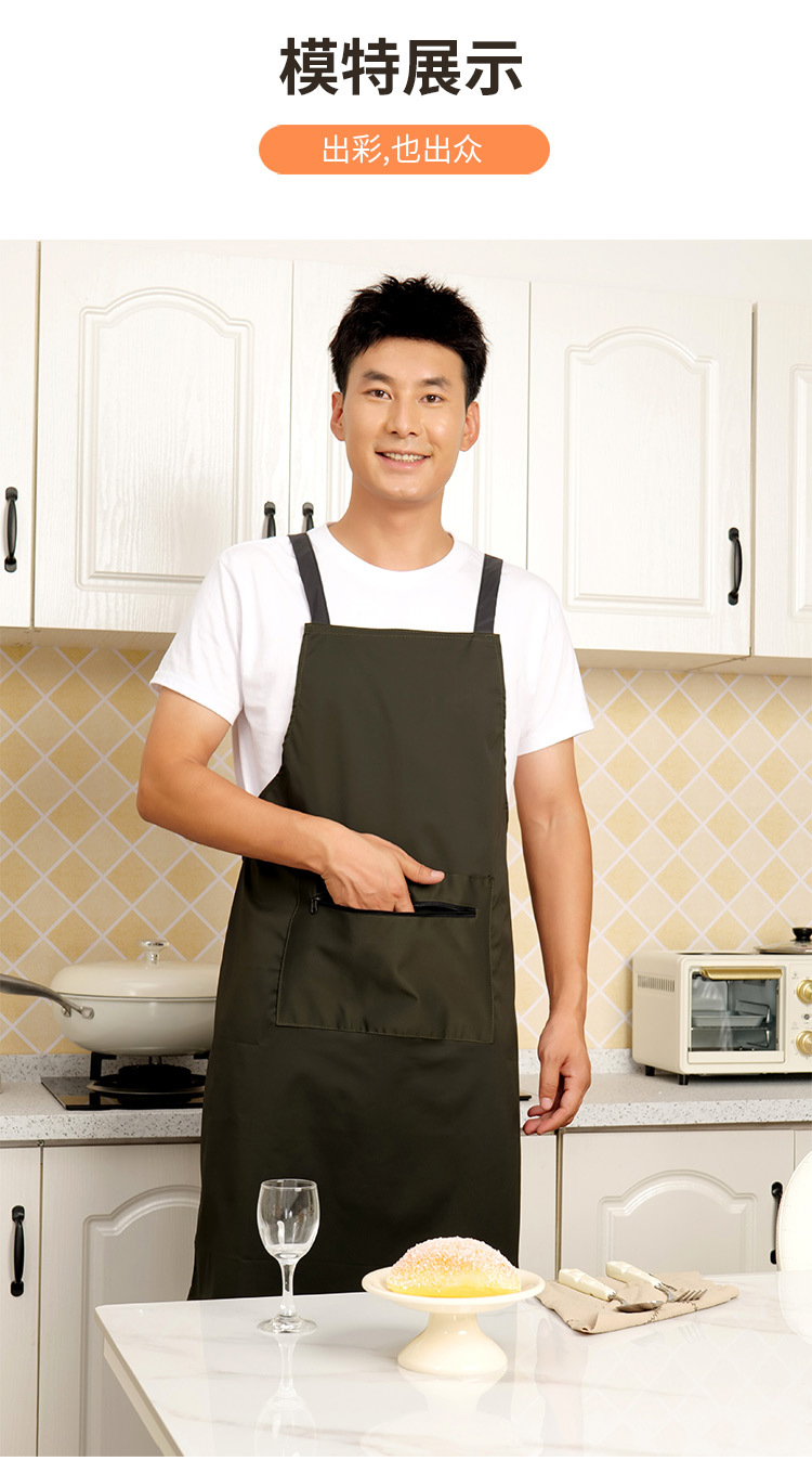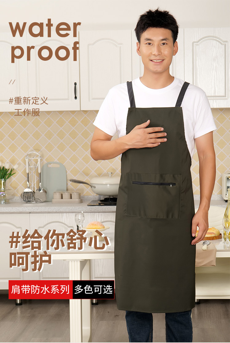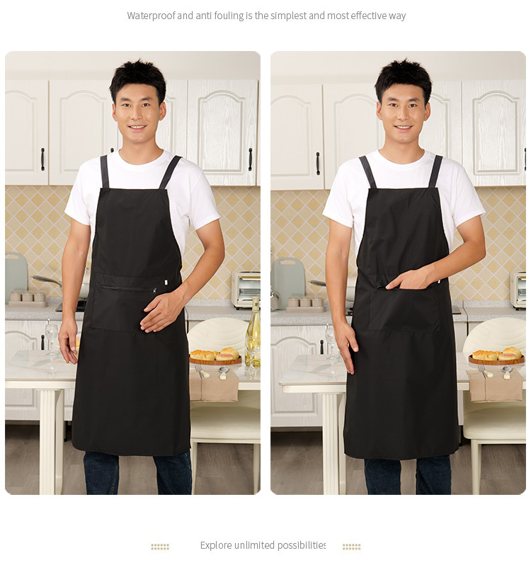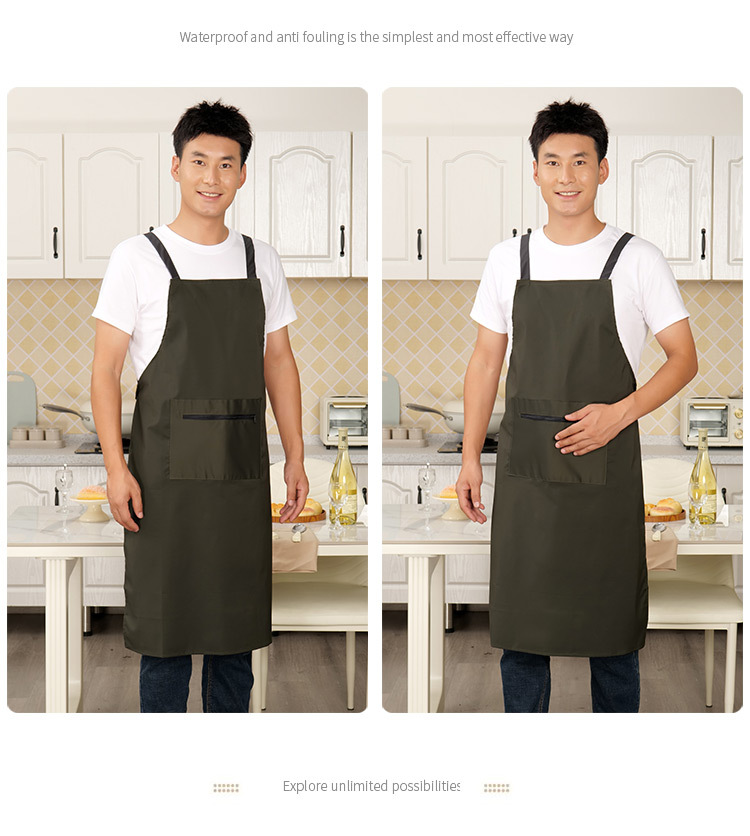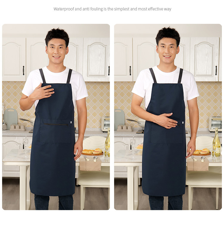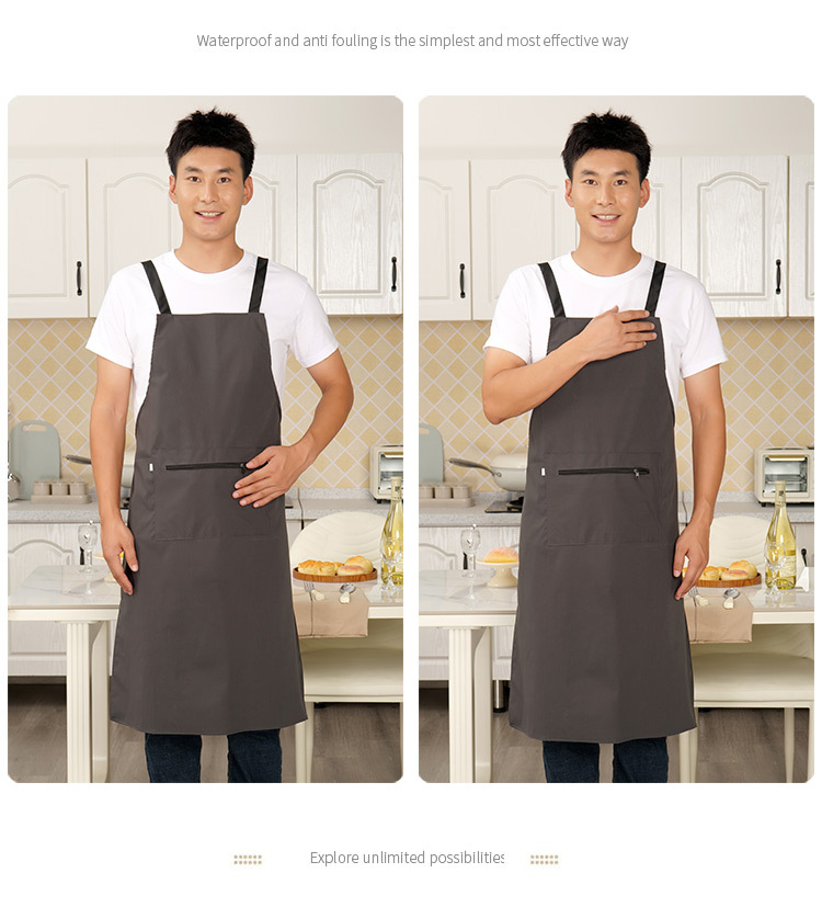 로고가 인쇄된 남성용 방수 및 방유 앞치마, 커피숍 주방 지퍼 포켓 작업복, 여성용 케이터링