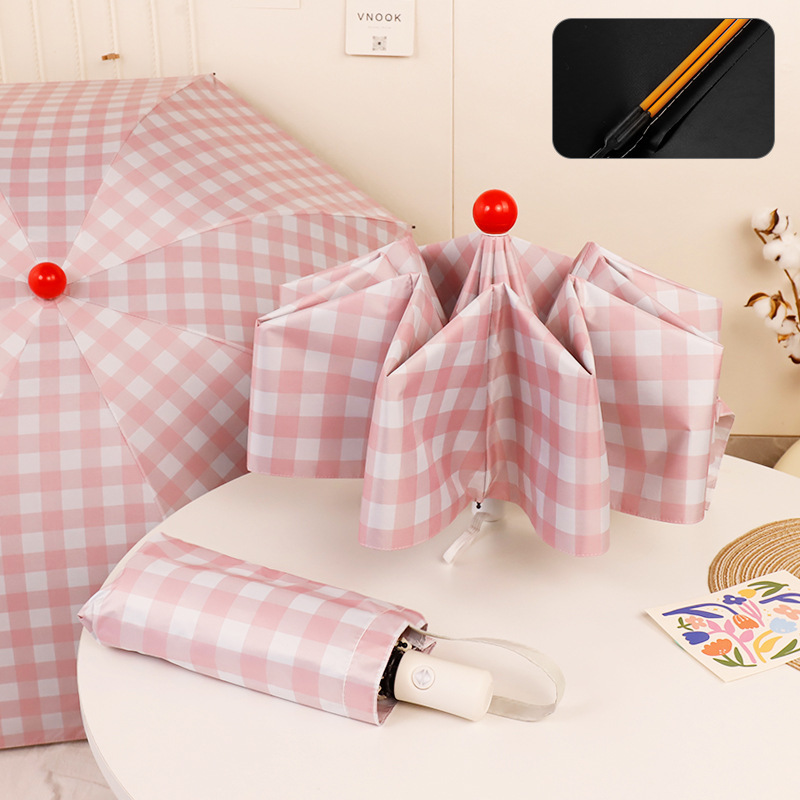 • 빨간색과 흰색 체크무늬 자동 8본 이중섬유 빨간색 코