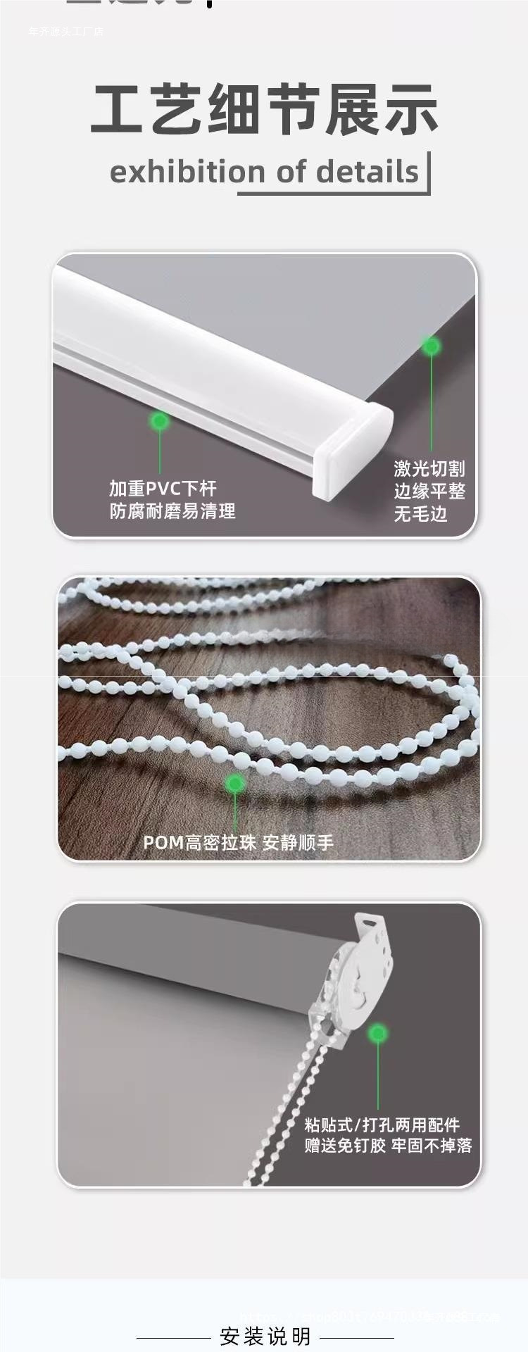 2025년 신형 커튼 차양 롤 풀 차양 설치가 필요 없는 사무실 완전 차광 욕실 블라인드