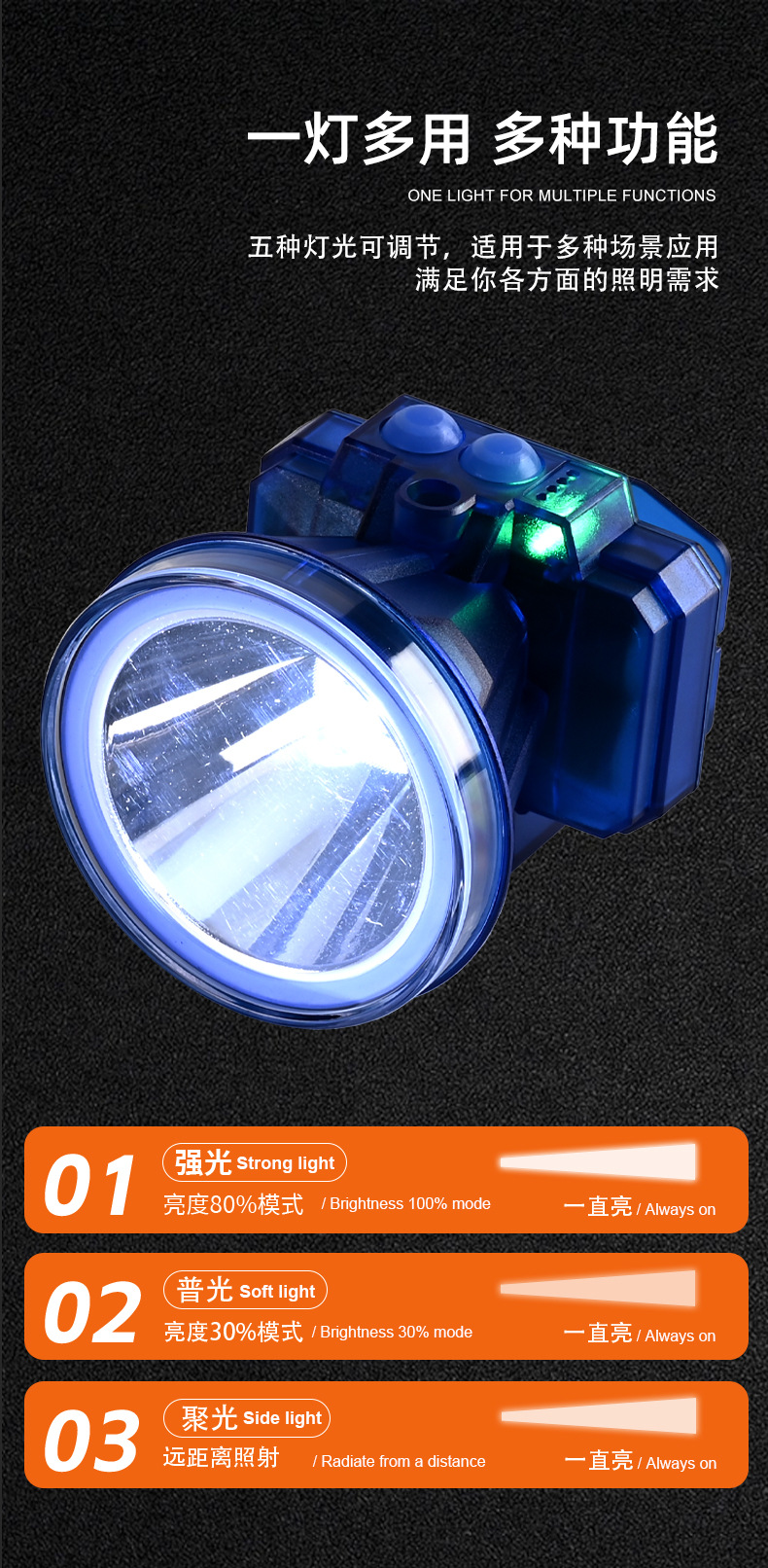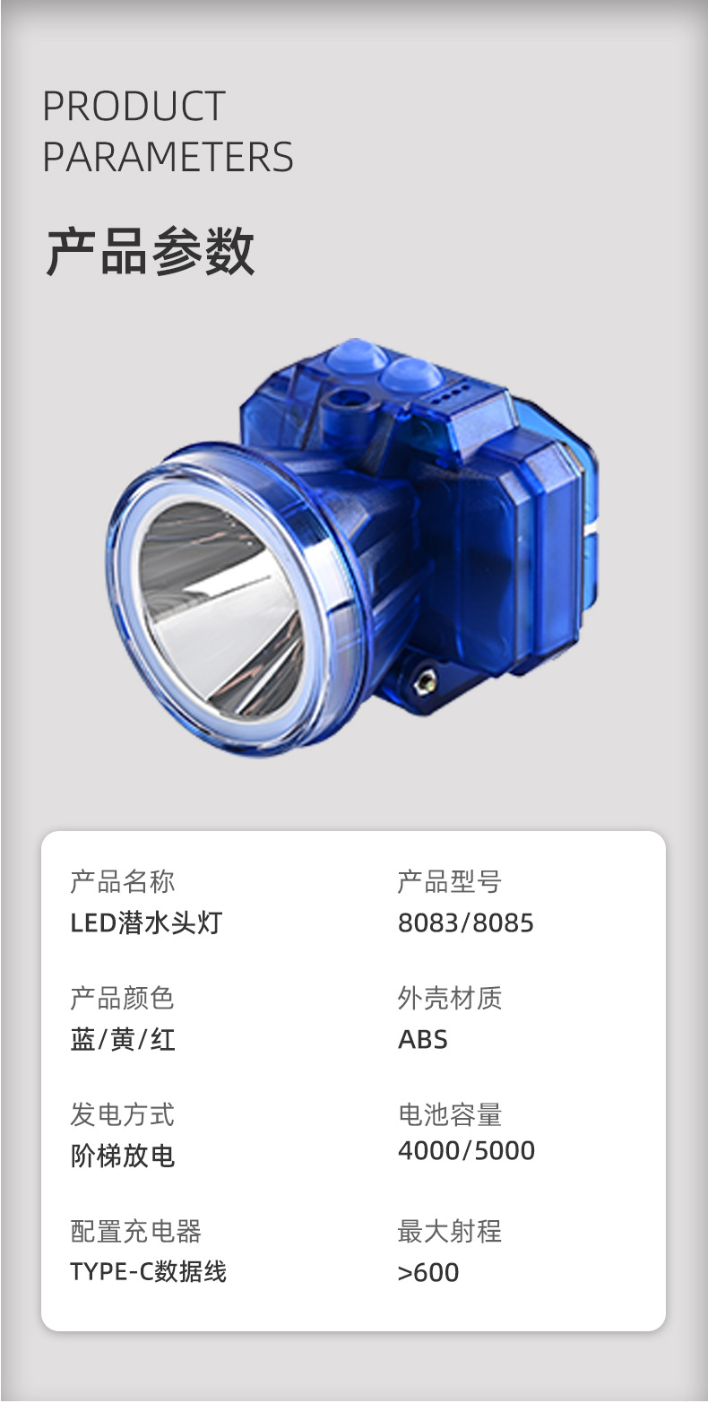 다이빙 전문 장비 충전식 강력 헤드라이트 방수 조명 손전등 야외용 듀얼 리튬 배터리 낚시용