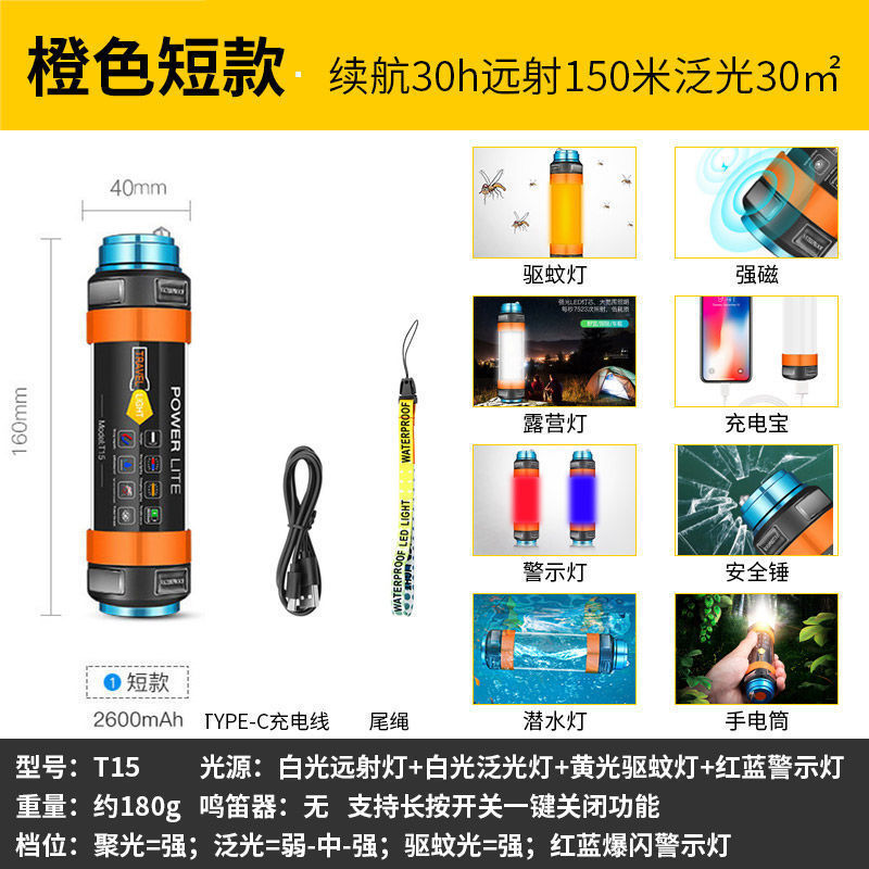 • 주황색 짧은 모델, 배터리 수명 20H, 장거리 150, 투광 조명 30 평방 미터