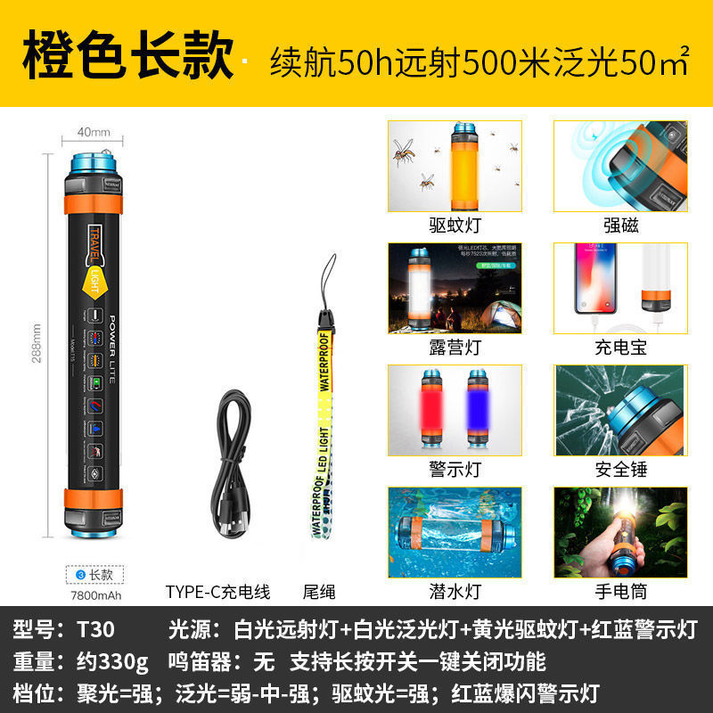 • 주황색 긴 모델, 배터리 수명 40H, 장거리 500, 투광 조명 50평방미터