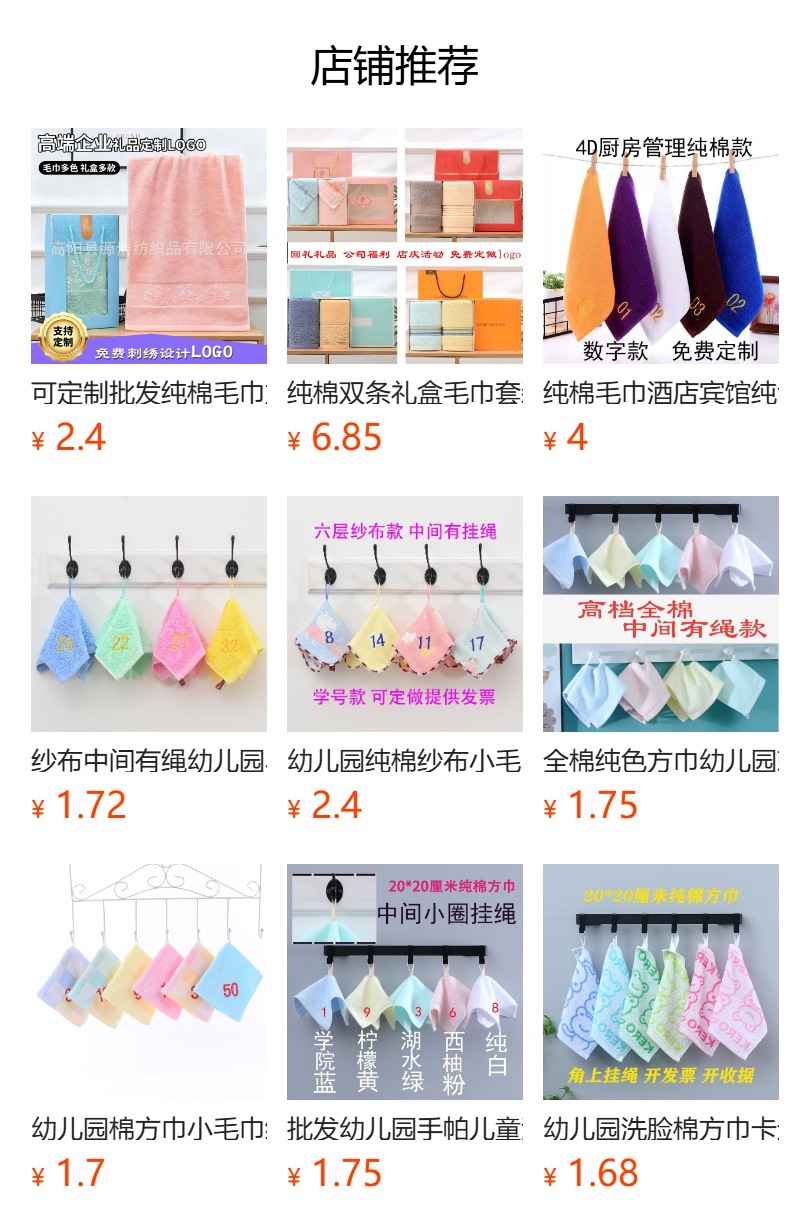 맞춤형 유치원 손수건 어린이 세안 수건 유아용 A급 아기 손수건 중간에 끈이 있는 사각 수건스토어 가기
