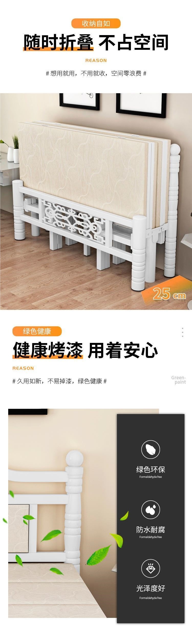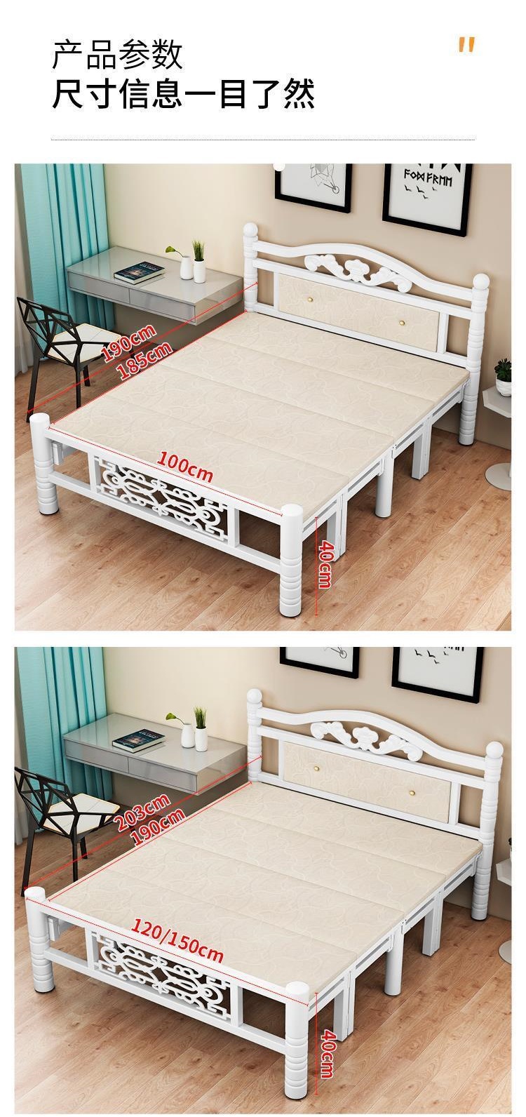 접이식 침대 더블 1.8m 와이드 점심 시간 접이식 침대 스틸 프레임 고급 점심 시간 접이식 침대 의자 분리형 싱글 침대스토어 가기