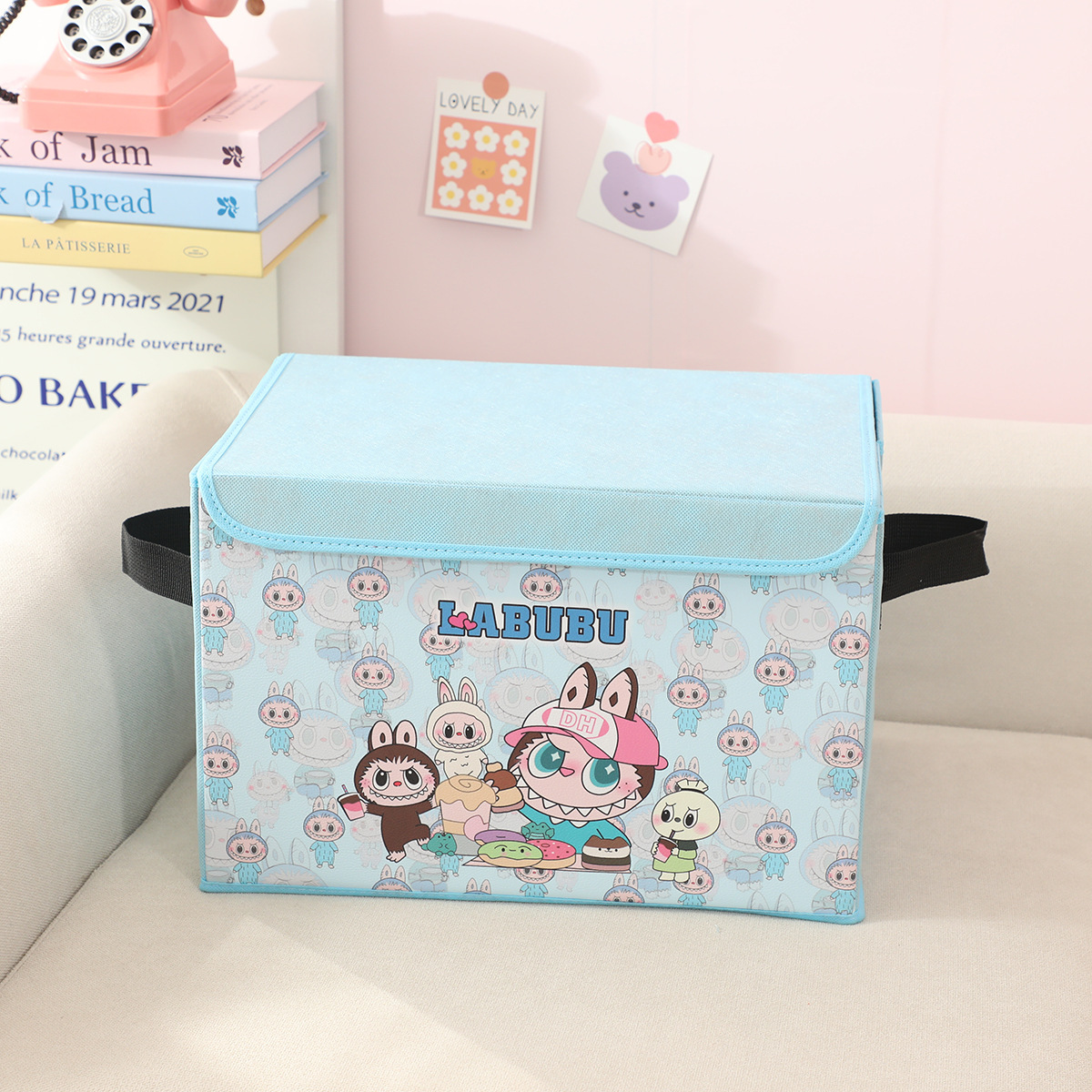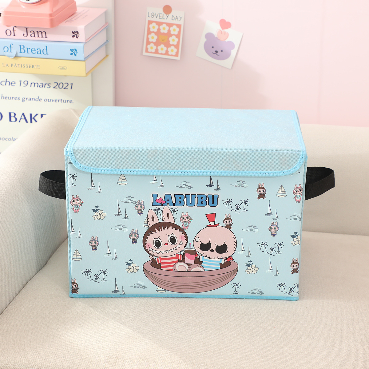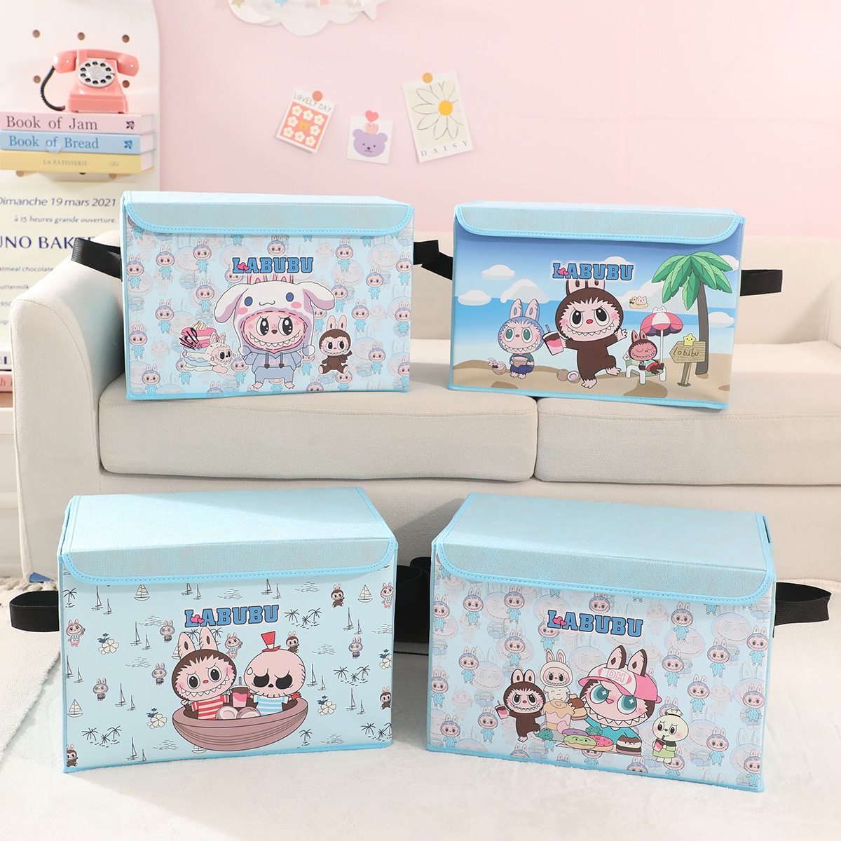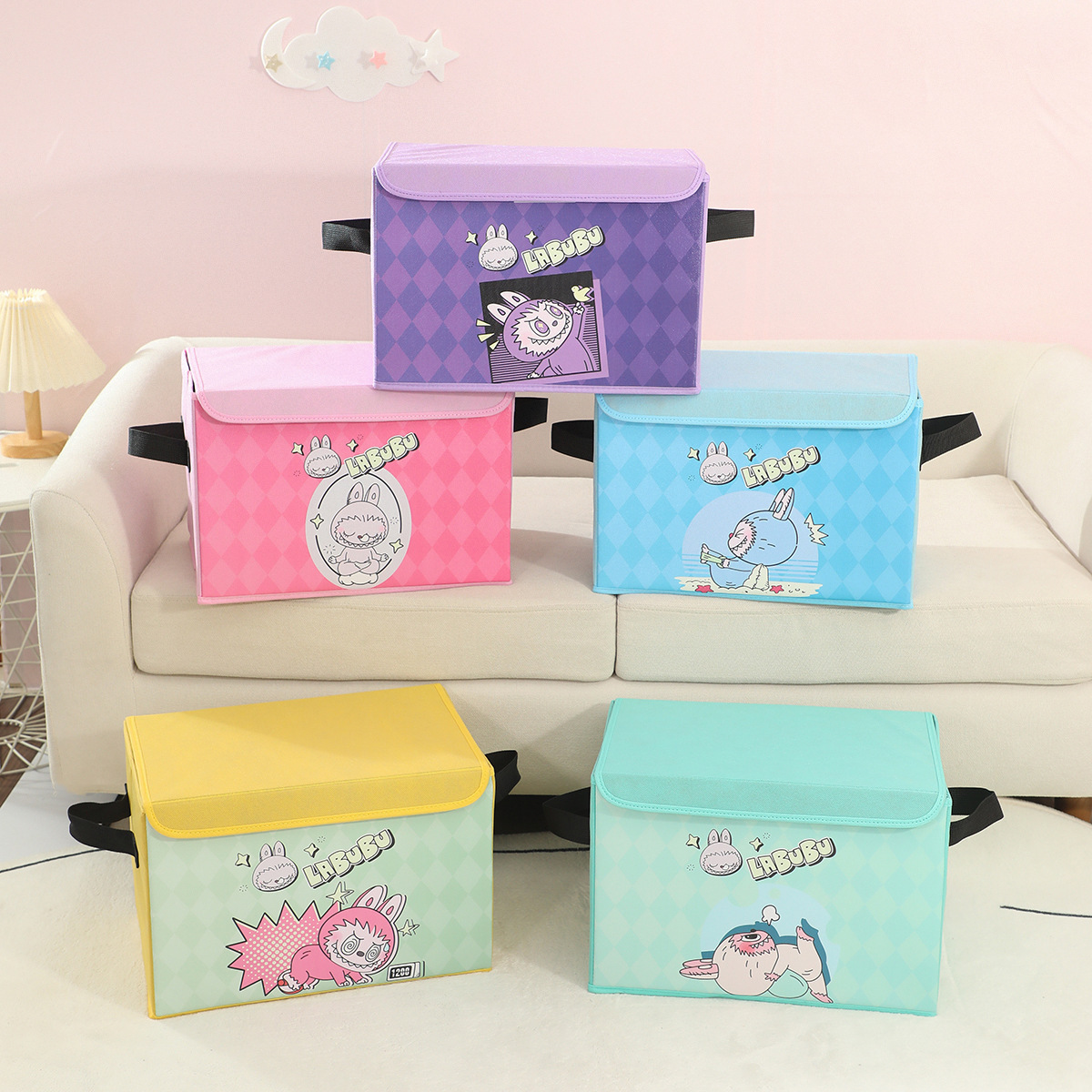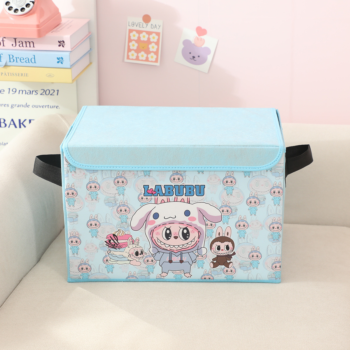 새로운 labubu 기숙사 책 스낵 보관 가정용 의류 및 장난감 보관 상자 접이식 자동차 보관 상자