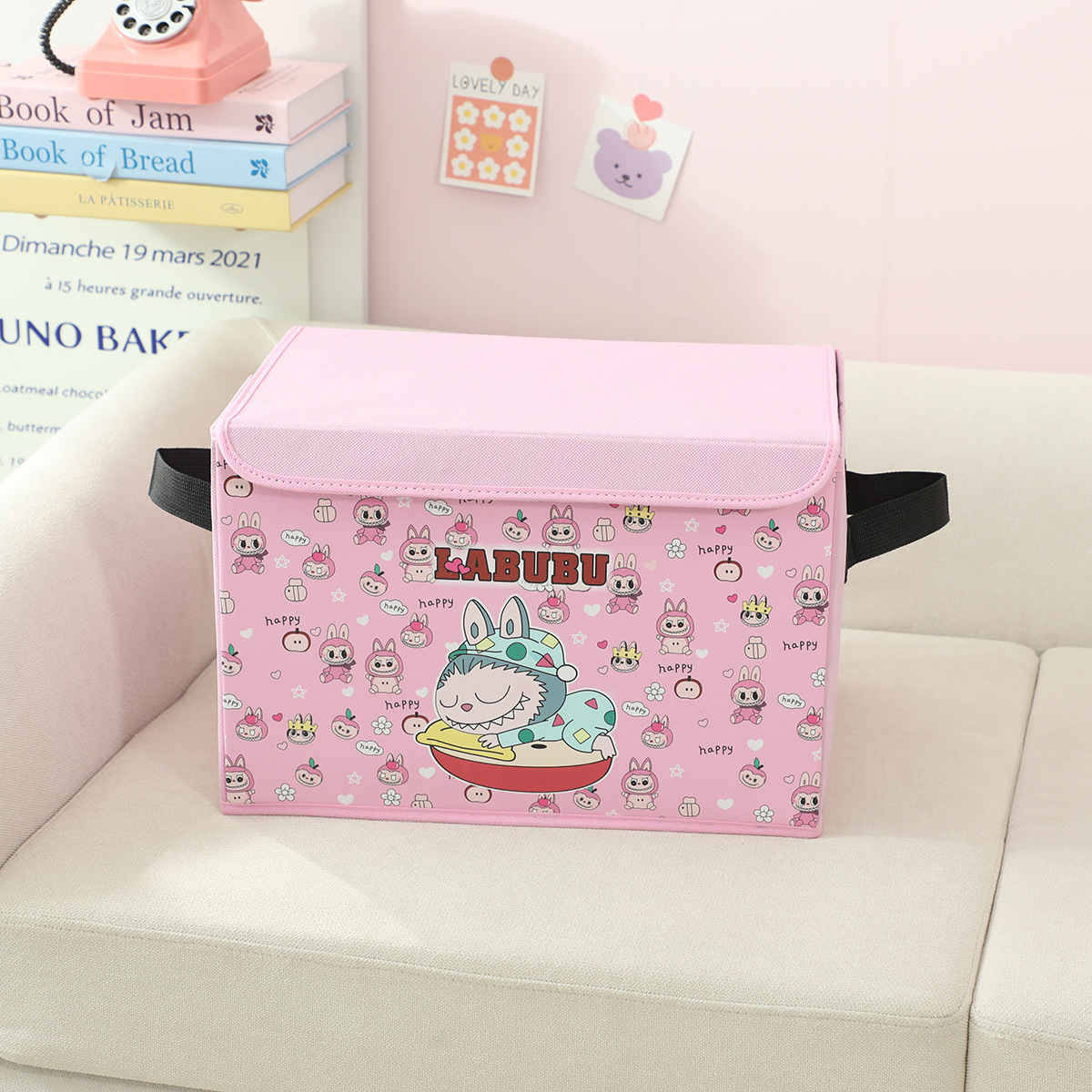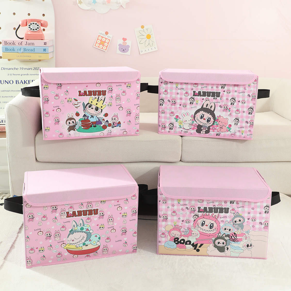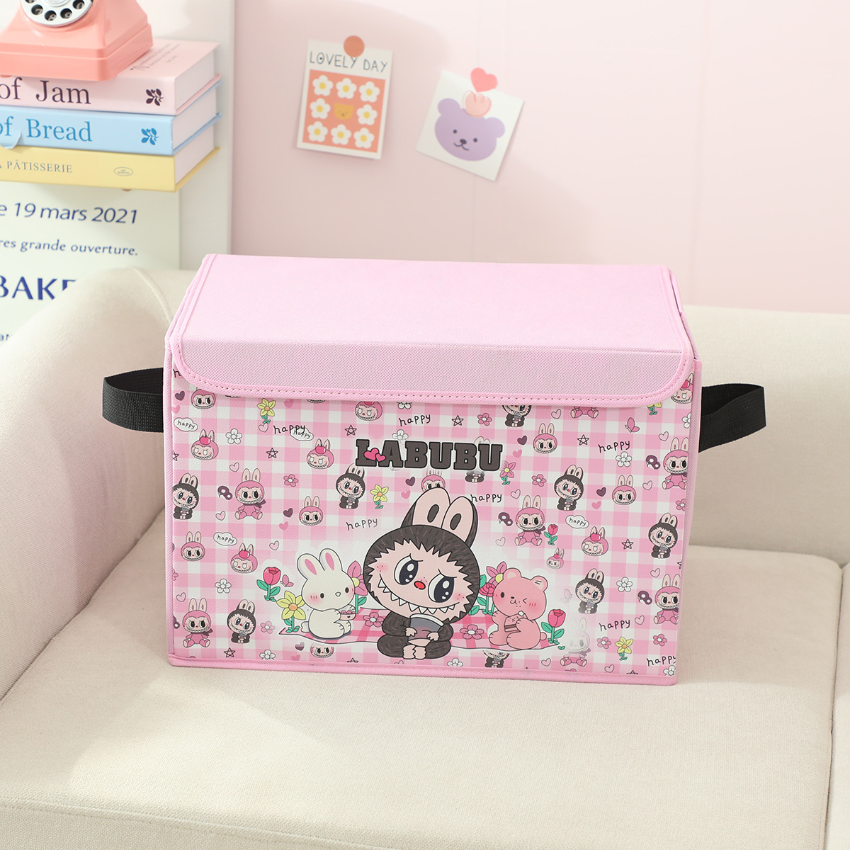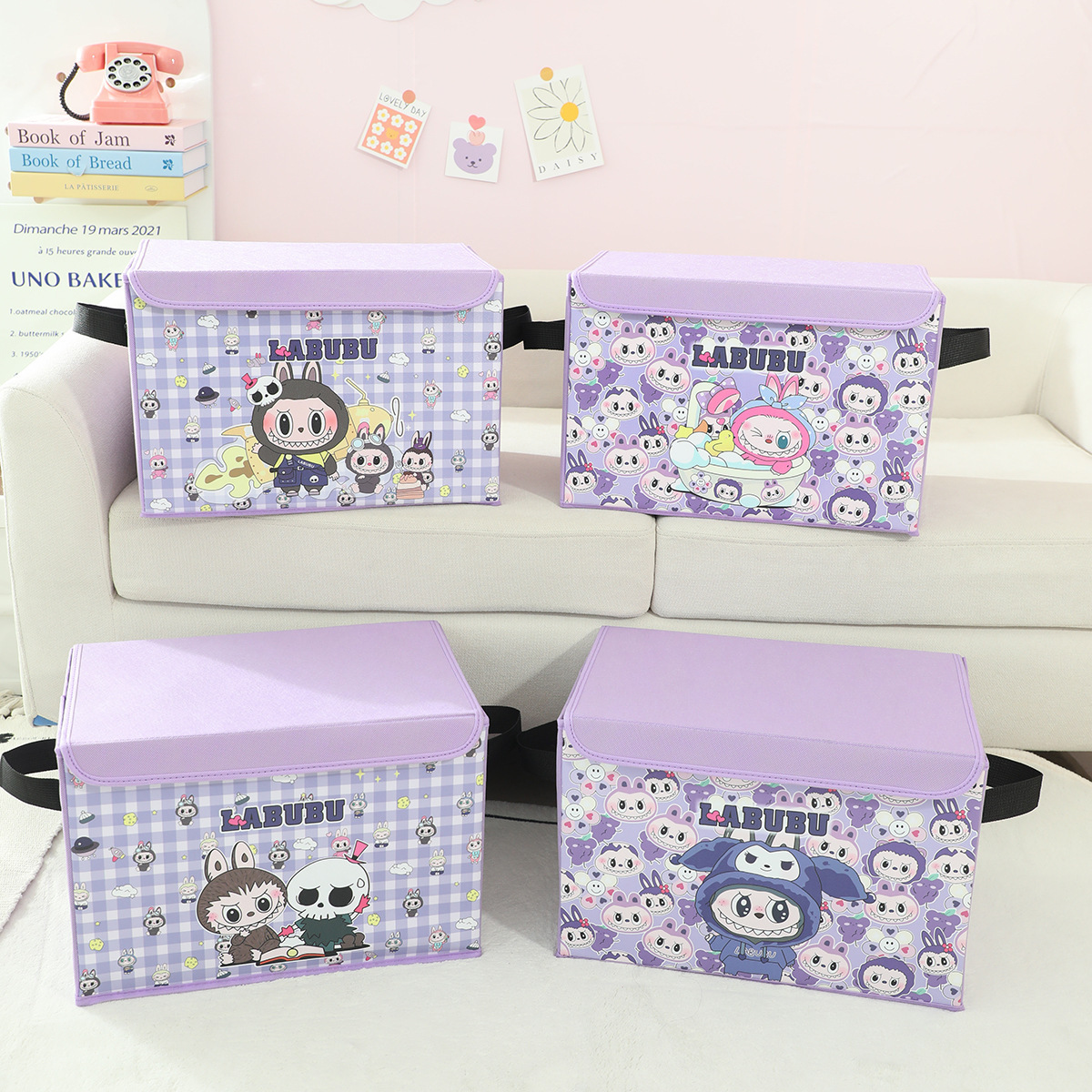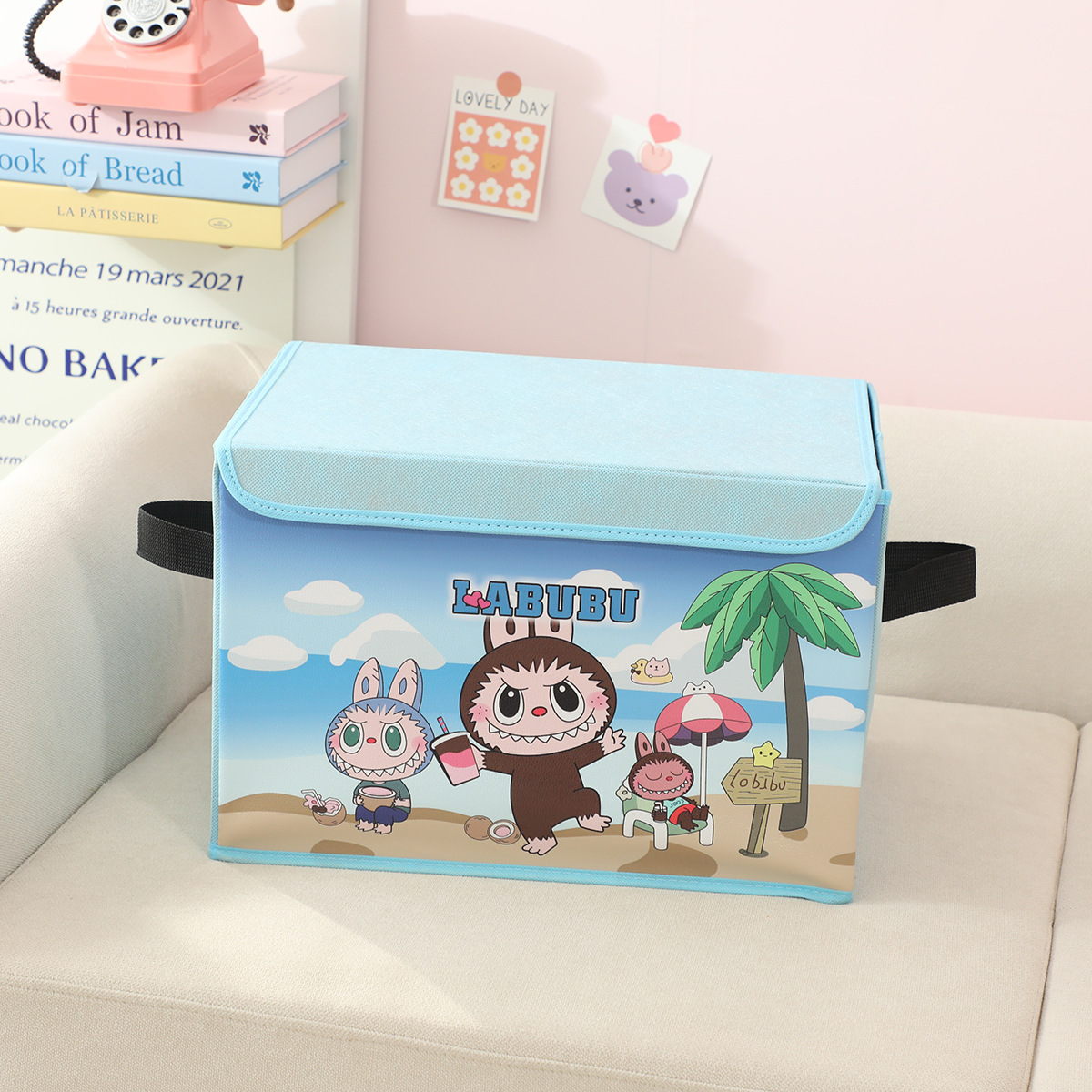 새로운 labubu 기숙사 책 스낵 보관 가정용 의류 및 장난감 보관 상자 접이식 자동차 보관 상자