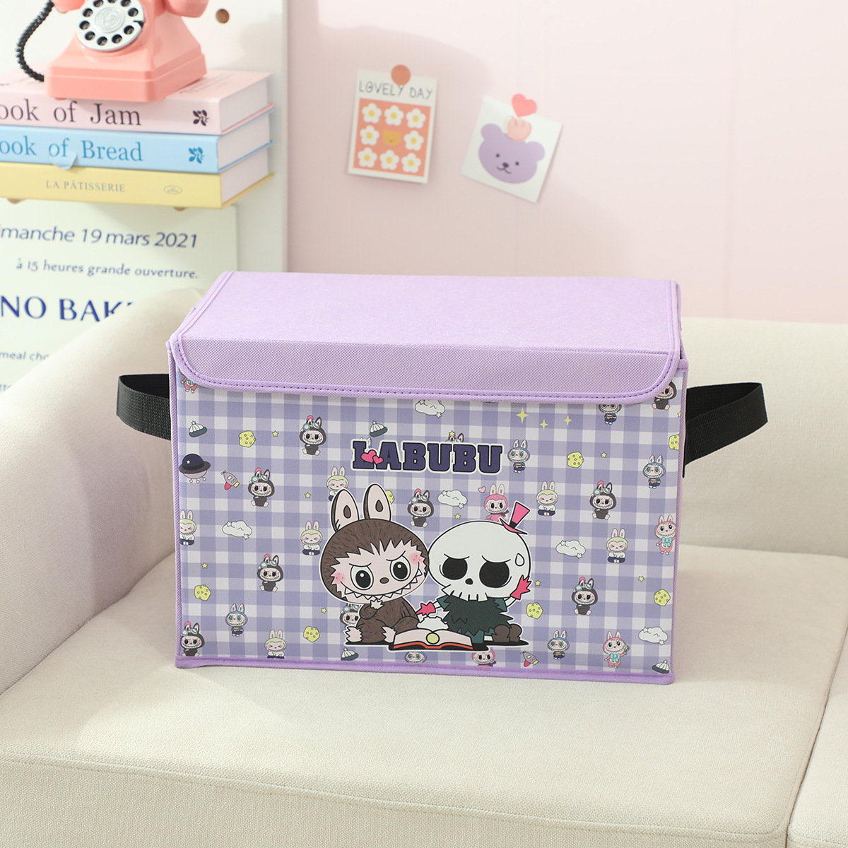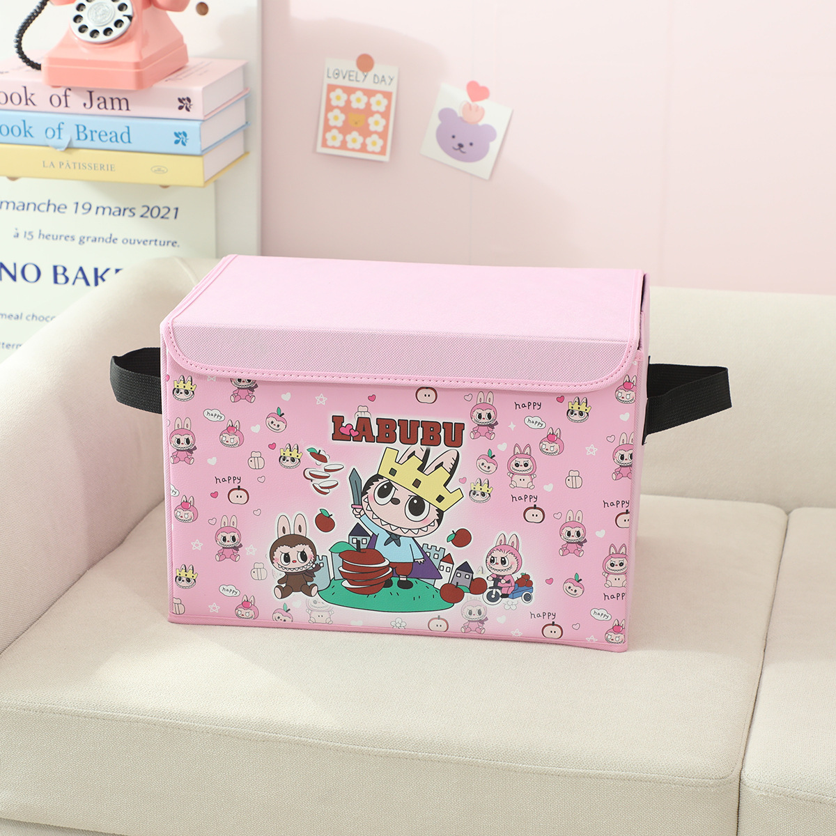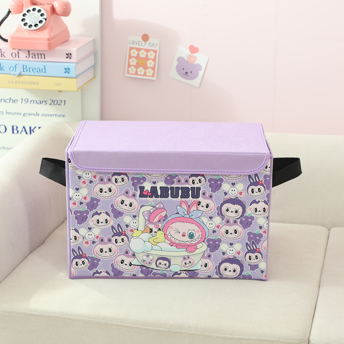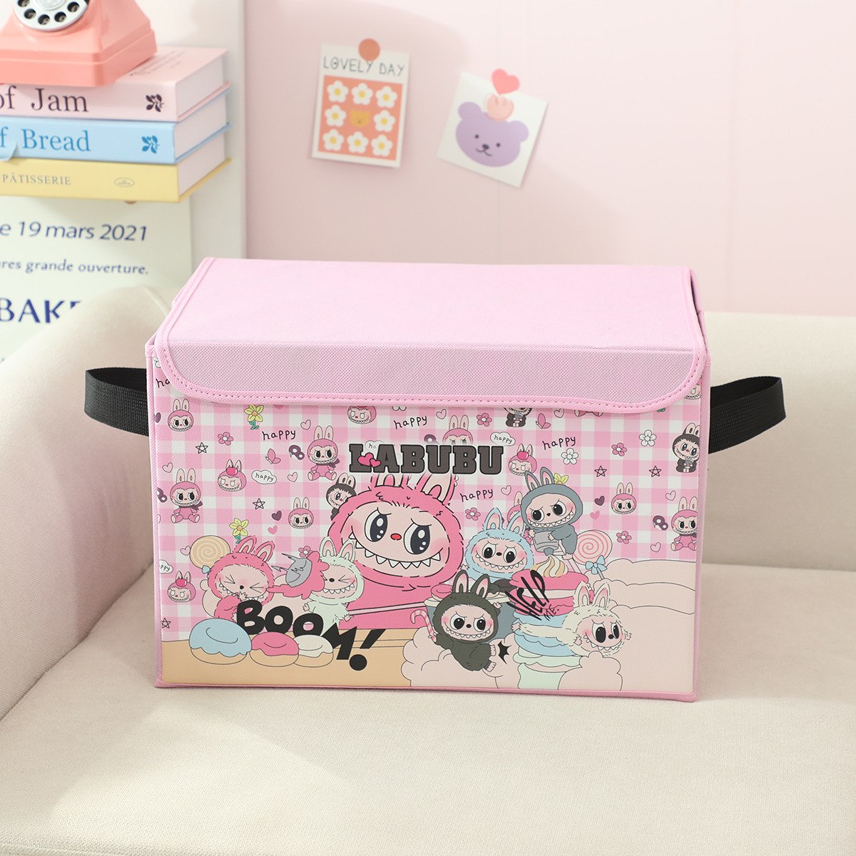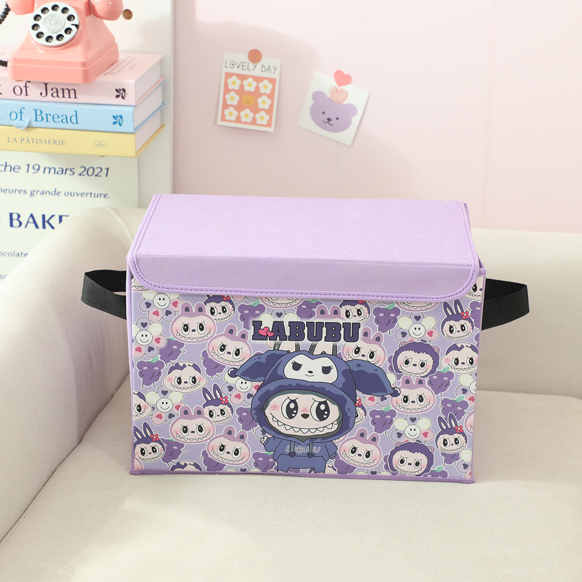 새로운 labubu 기숙사 책 스낵 보관 가정용 의류 및 장난감 보관 상자 접이식 자동차 보관 상자