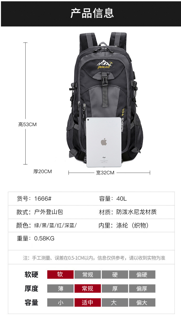 40L 야외 등산 가방 남자 대용량 스포츠 경량 여행 수하물 가방 하이킹 스포츠 배낭 여자스토어 가기