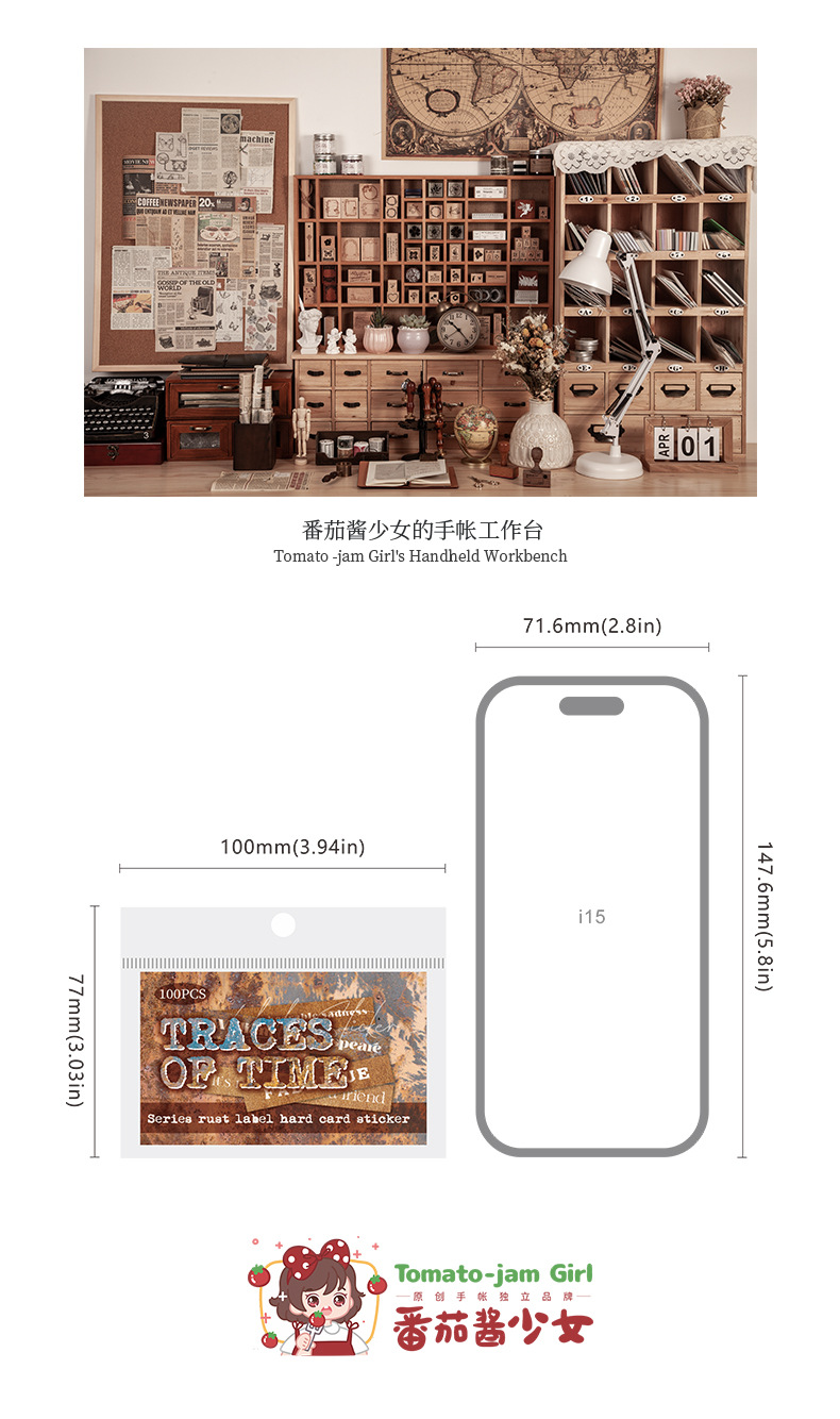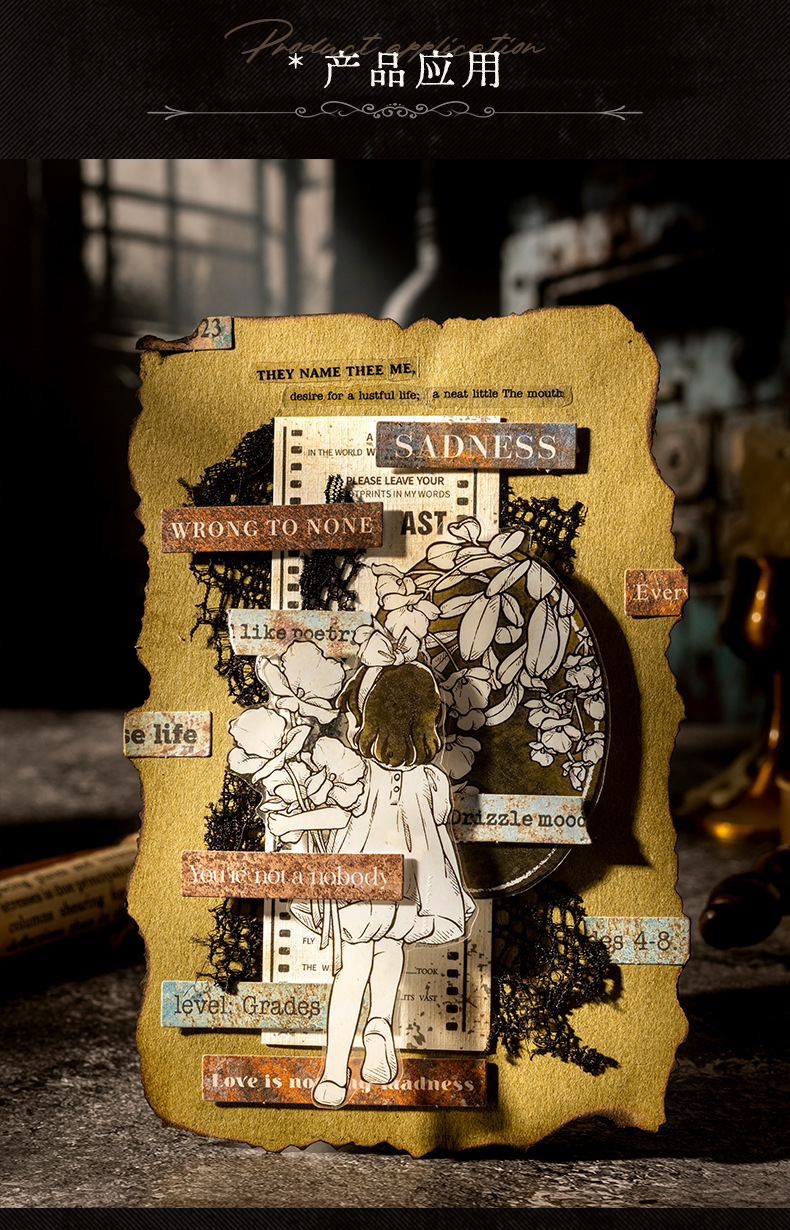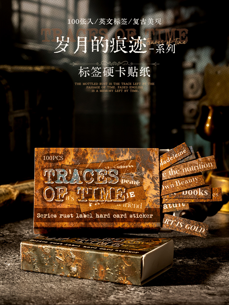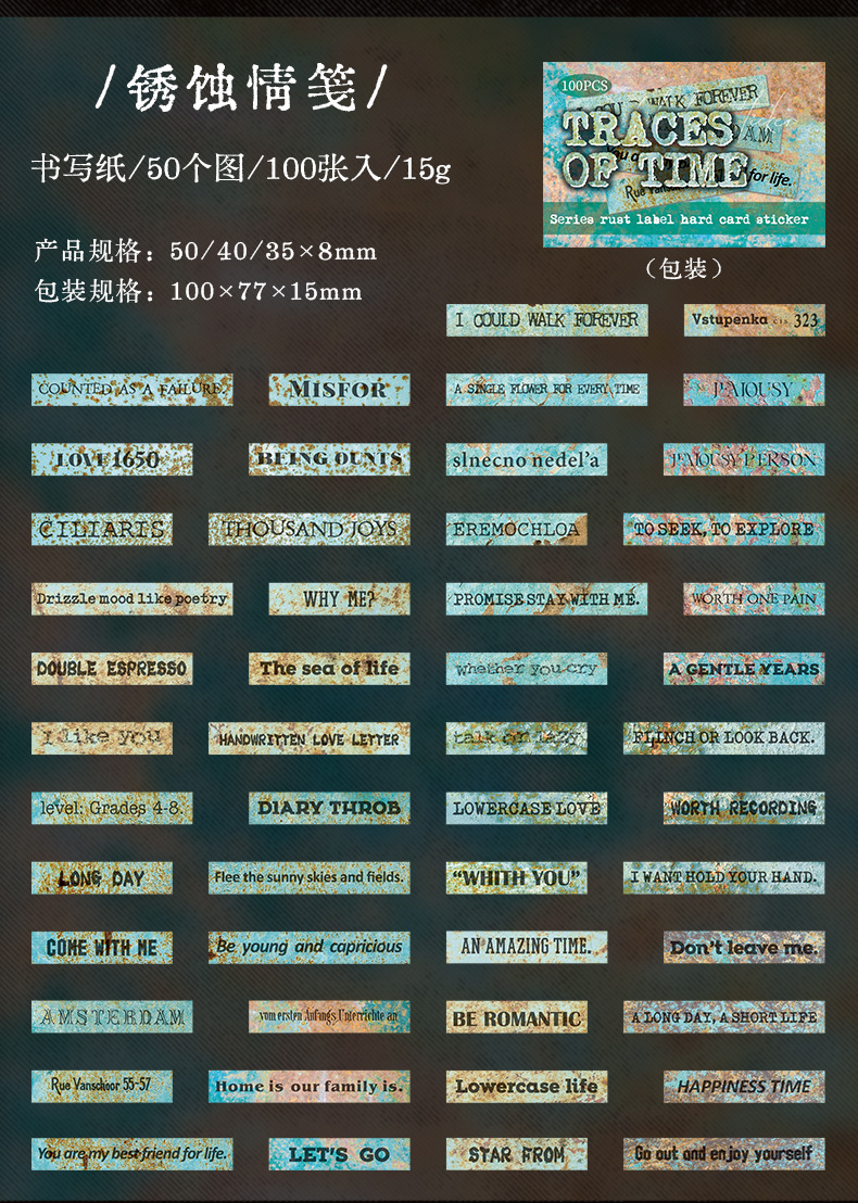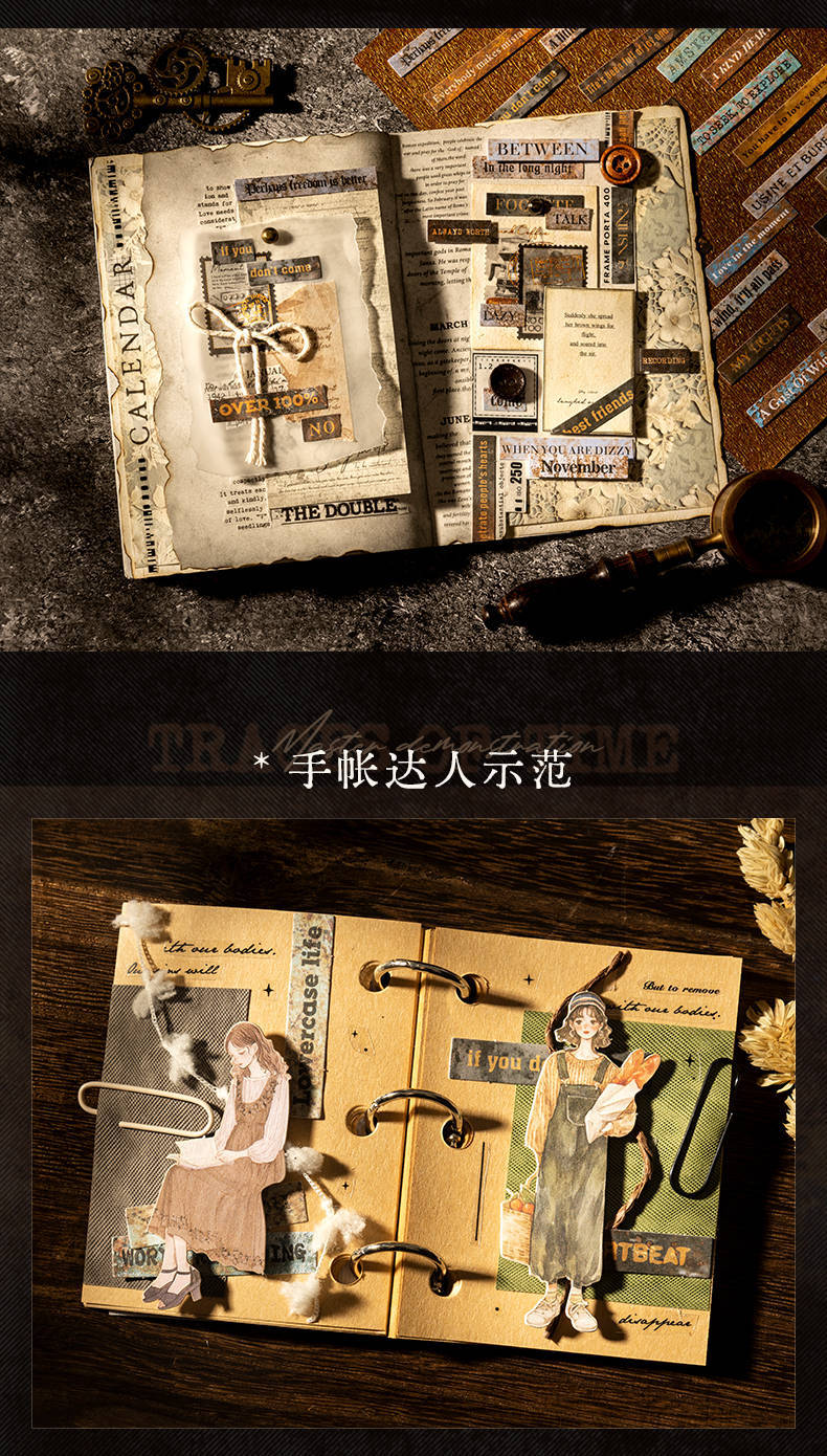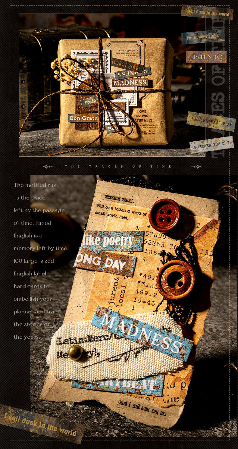 연도의 흔적 라벨 하드 카드 스티커 복고풍 영어 라벨 녹 배경 소재 콜라주 핸드북 장식스토어 가기