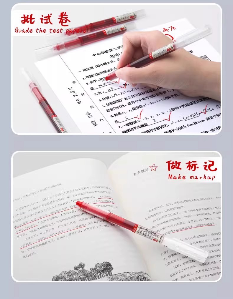 레드 스트레이트 액체 볼펜 간단한 레드 펜 수성펜 교사 교정 시험지 숙제 젤 펜 학생 교사
